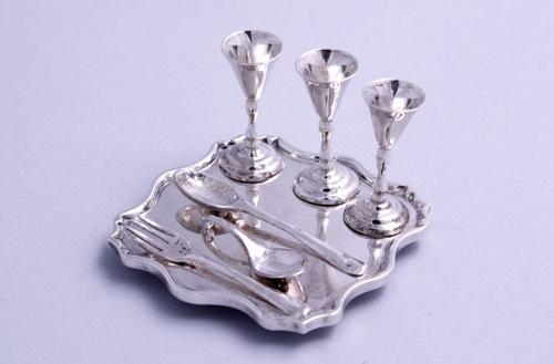 Zilveren miniatuur dienblad met drie roemers door Ar...