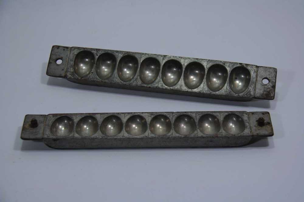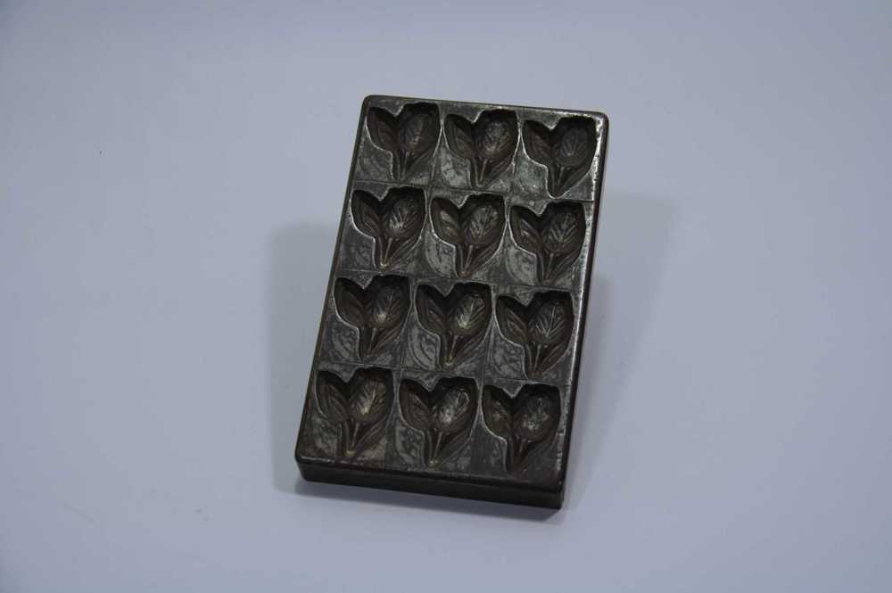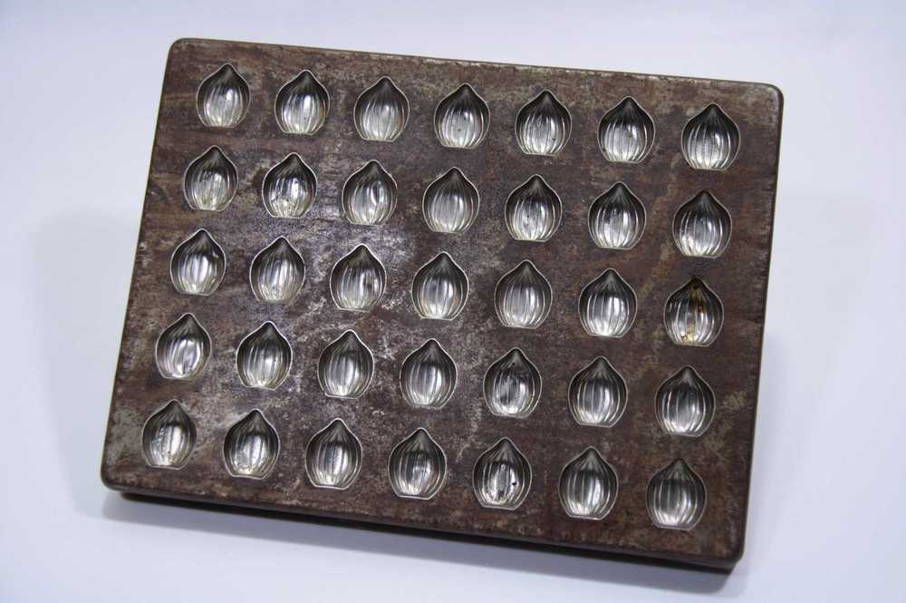 Chocoladevorm van metaal voor 5 pruimen uit de 20e eeuw