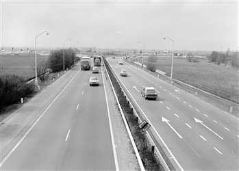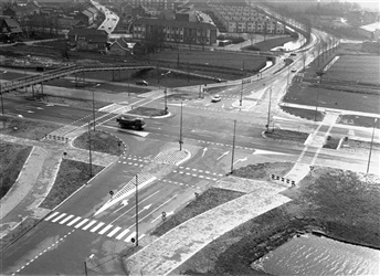 Verkeersdrukte bij het knooppunt Oudenrijn, 1964