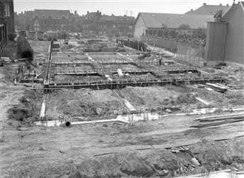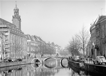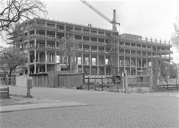 Bouw van viaduct Sint Sebastiaansbrug in Delft, 1962