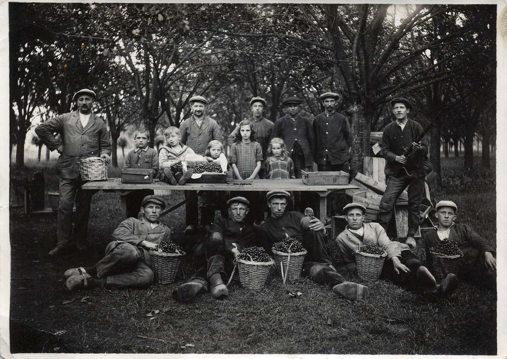 Kersenplukkers in de bogerd van S. Vos. Achterste ri...