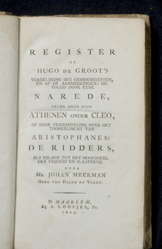 Register op Hugo de Groot's Vergelijking der Gemeene...