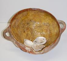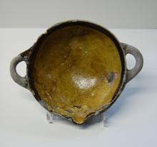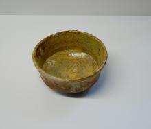 kom van rood aardewerk, inwendig geel (met dirie oes...