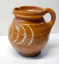 pispot van rood aardewerk slibdecor
