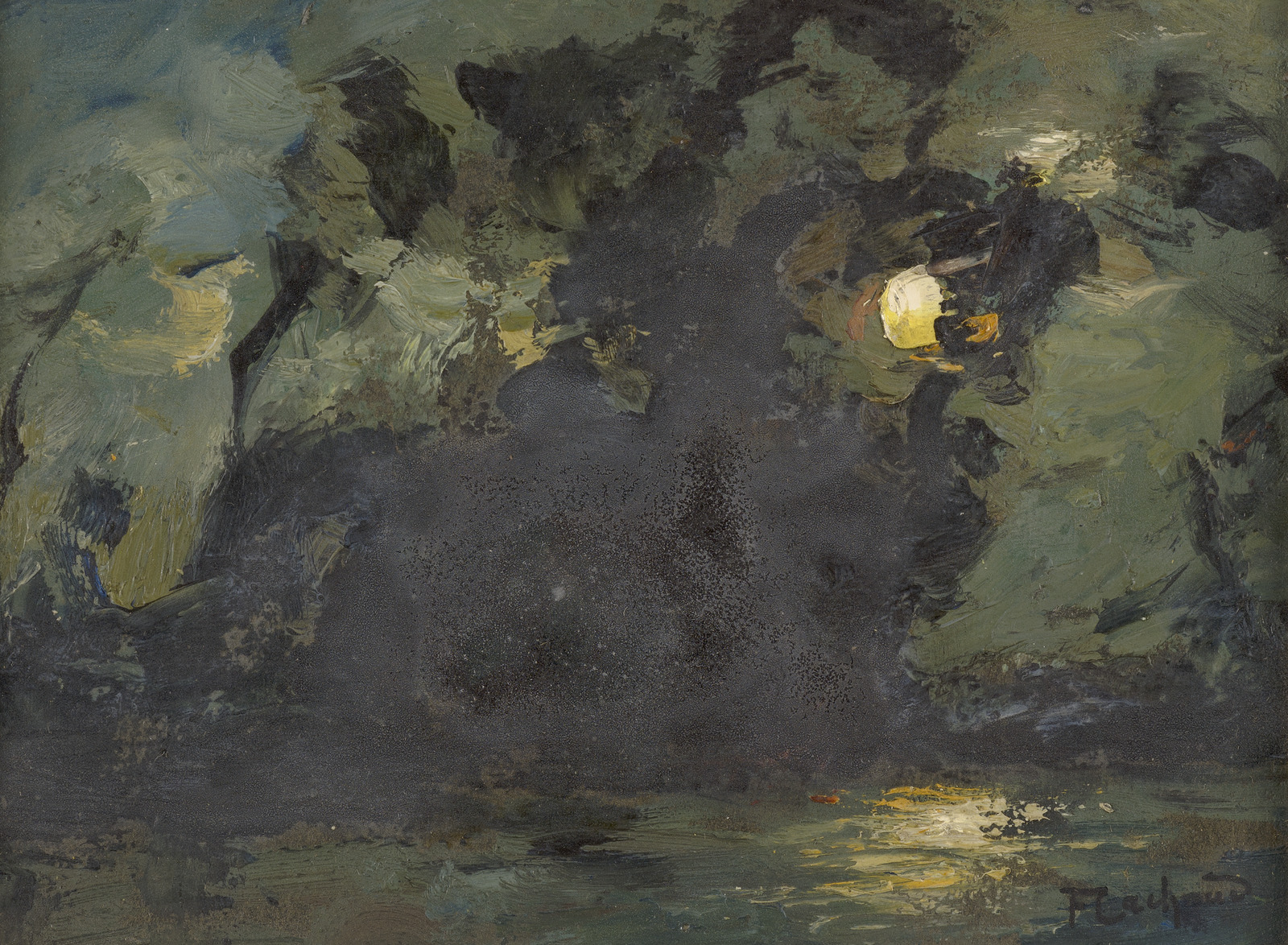 Bosvijver bij maanlicht