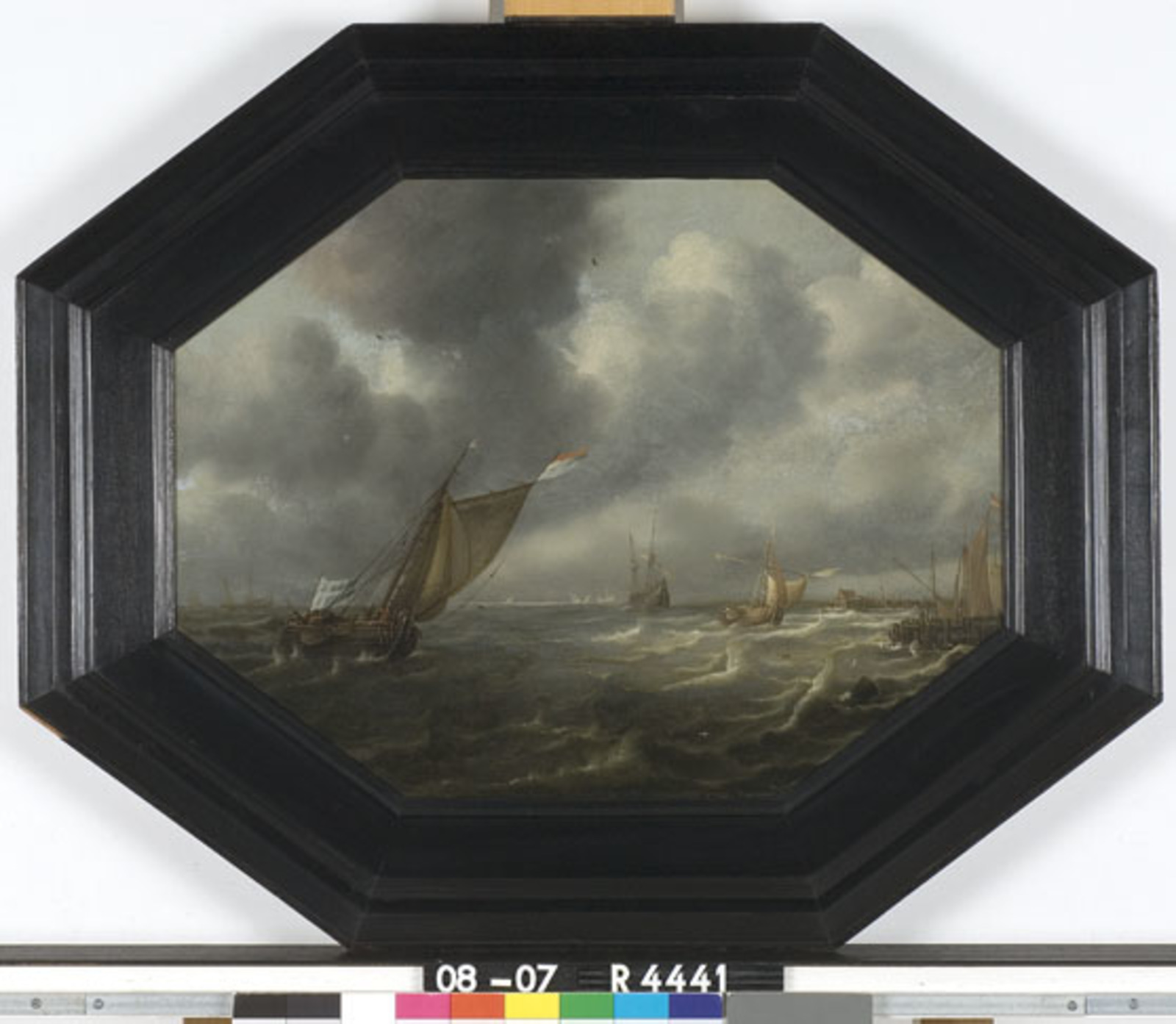 Schepen op een woelige zee voor de kust