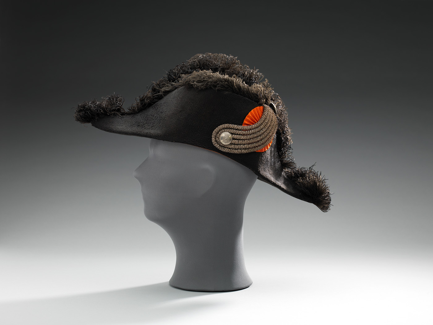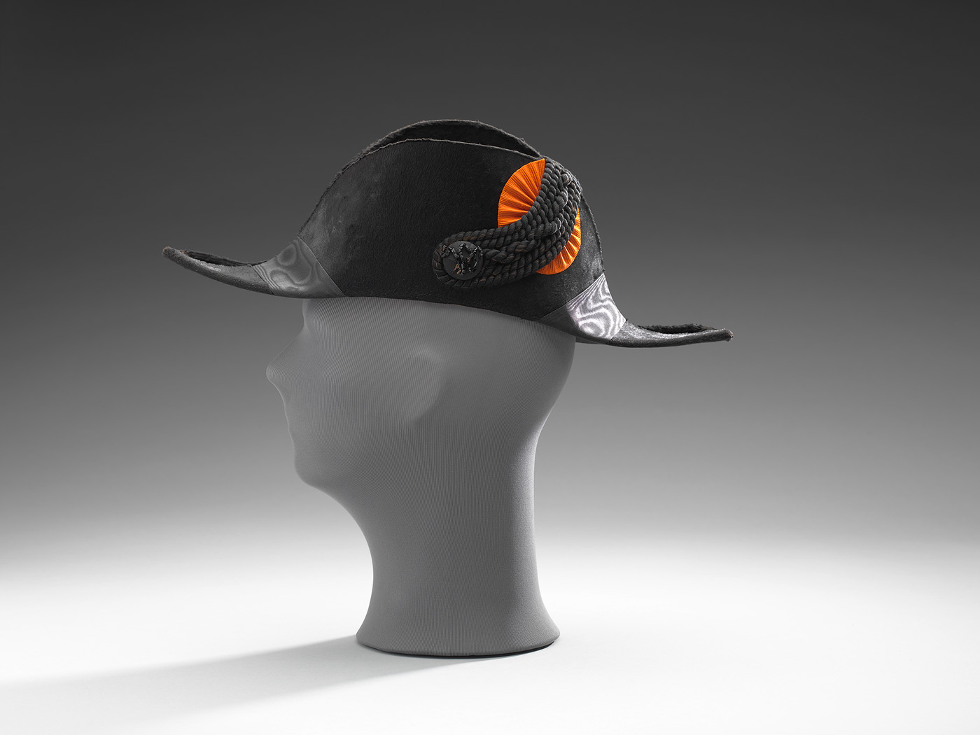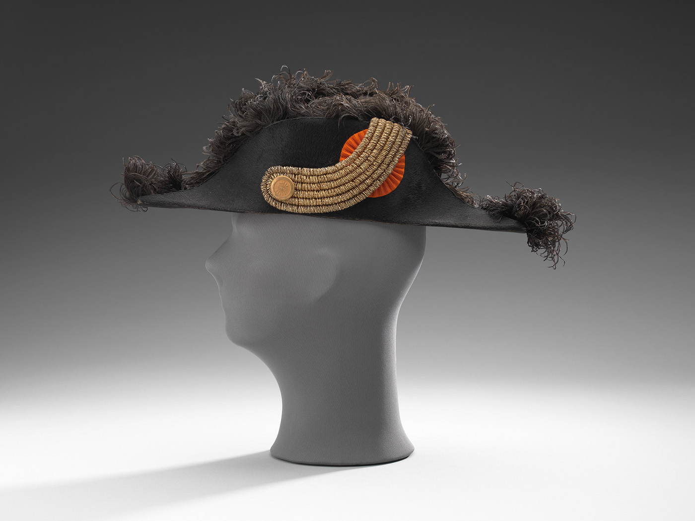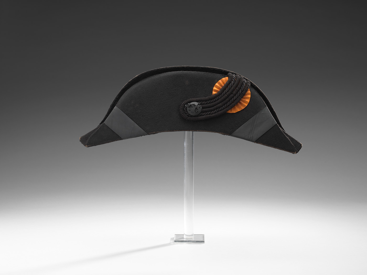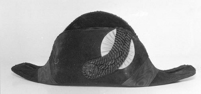 Claque met kokarde en zwarte knoop en zes zwarte tor...