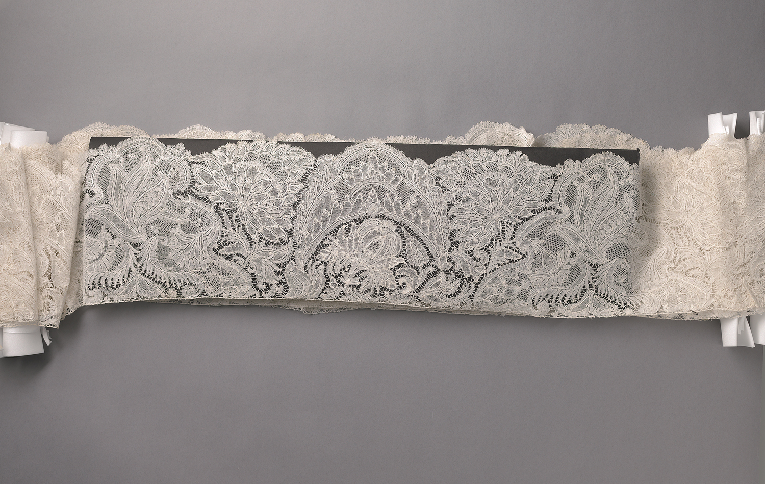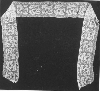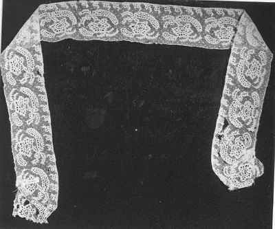 Zeer lange strook kloskant, aan elkaar geklost