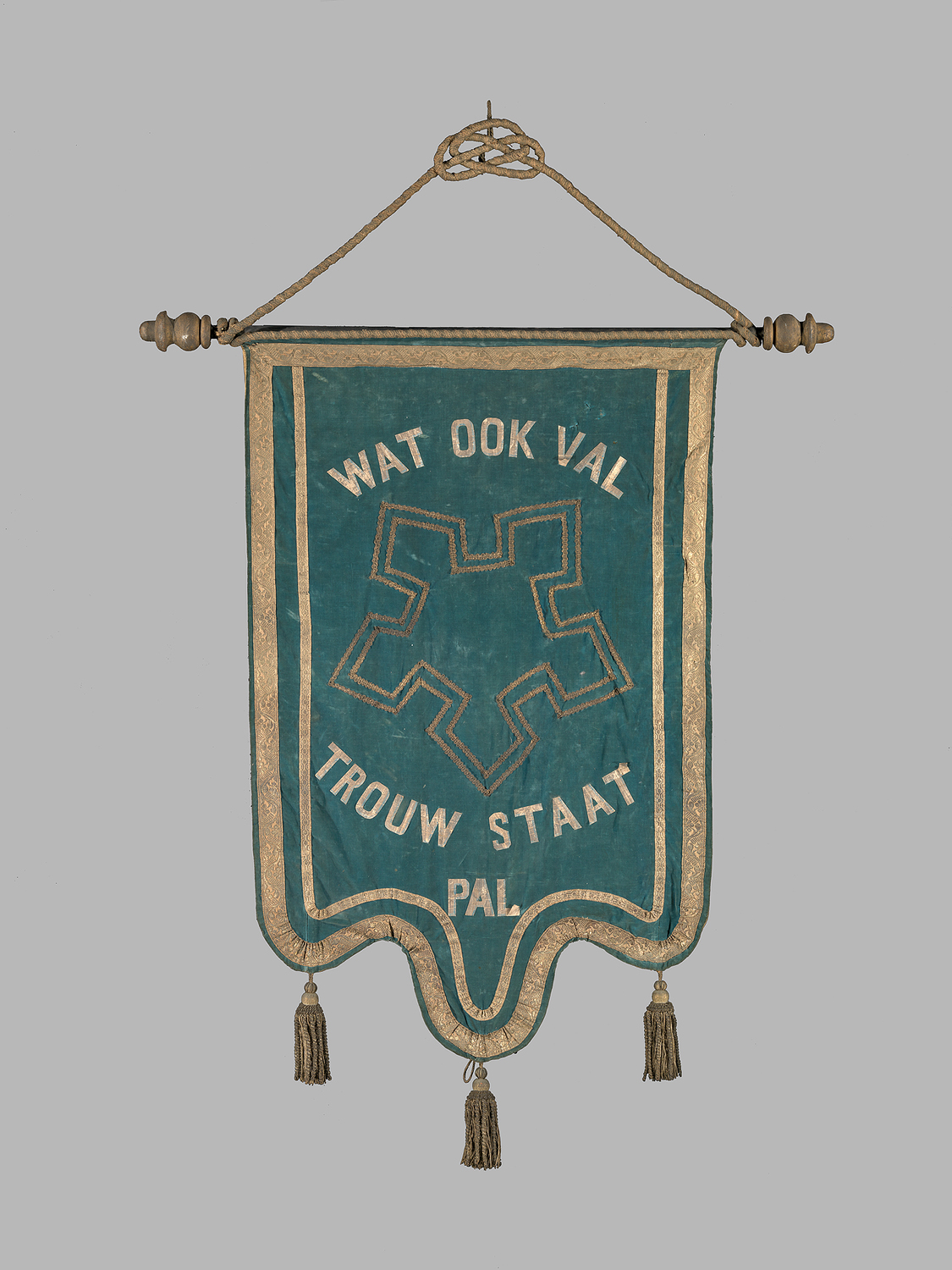 Vaandel: "Wat ook val trouw staat pal"