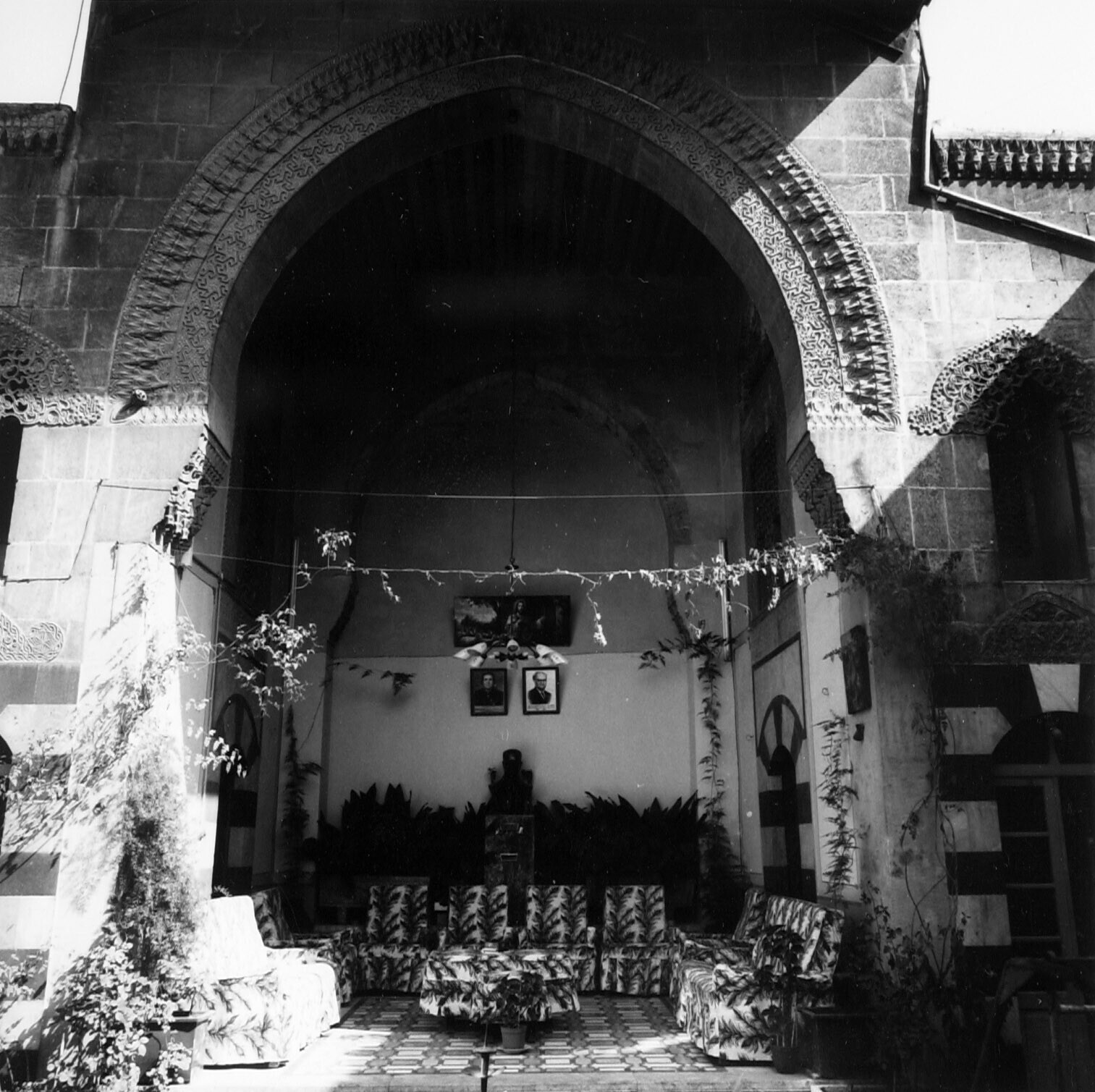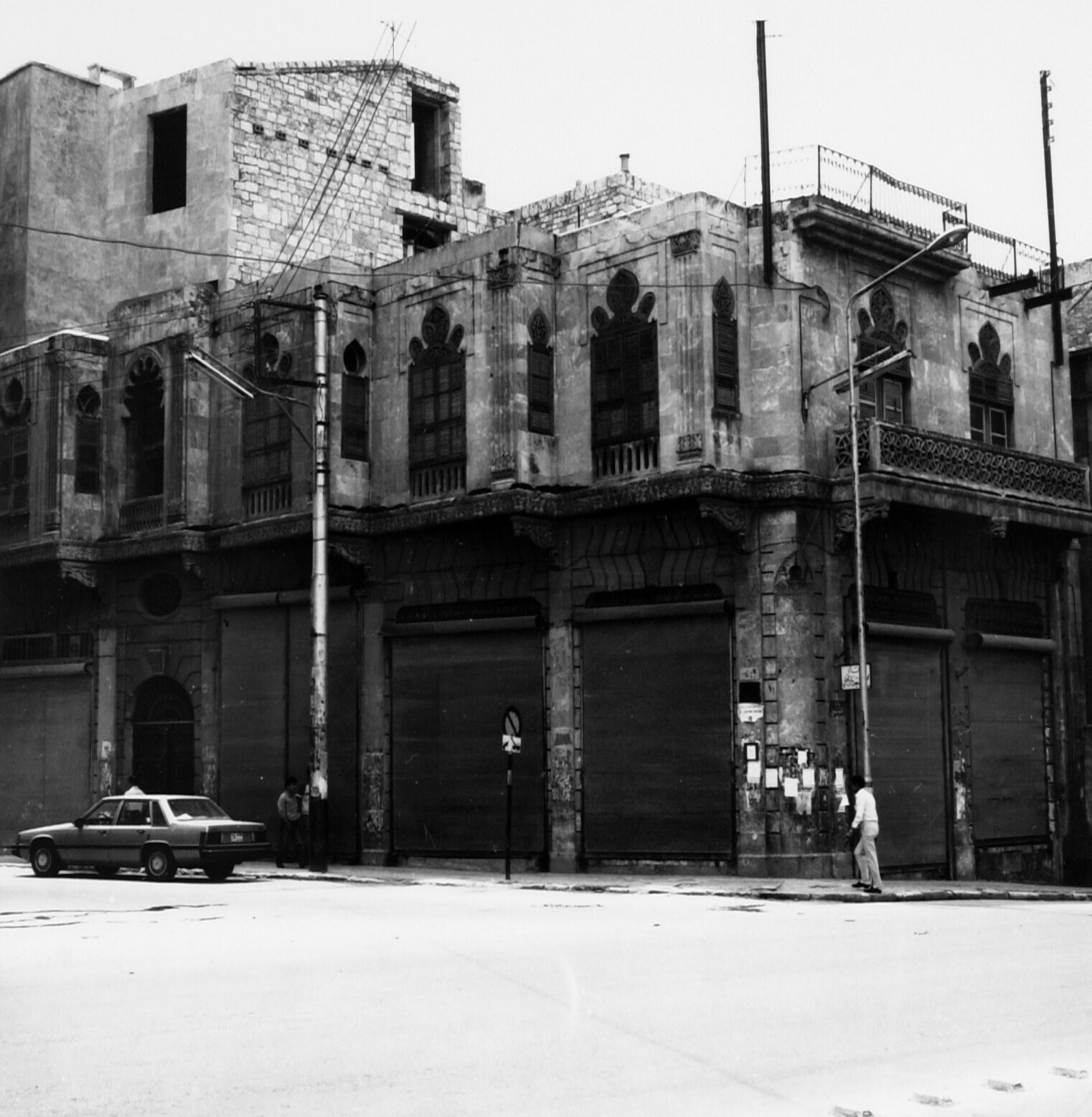 Oude woning met vensterbogen in hoek van Paio te Aleppo
