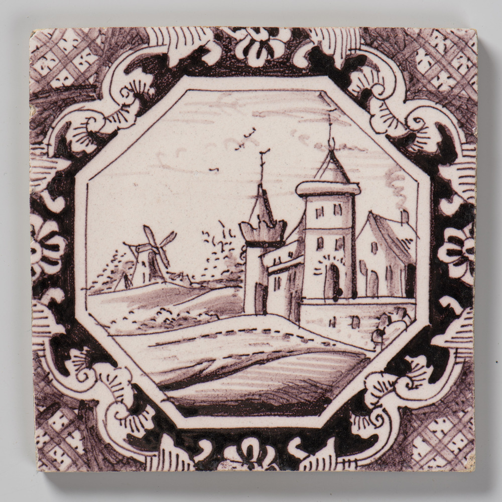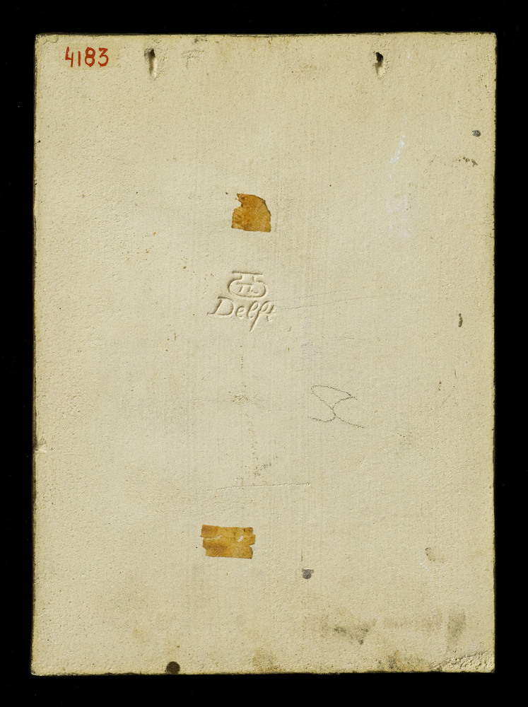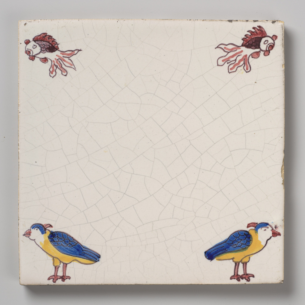 tegel van keramiek met tinglazuur, voorstellende: ru...