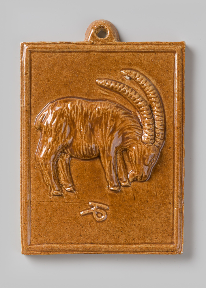 tegel van aardewerk in reliëf, voorstellende: sterre...