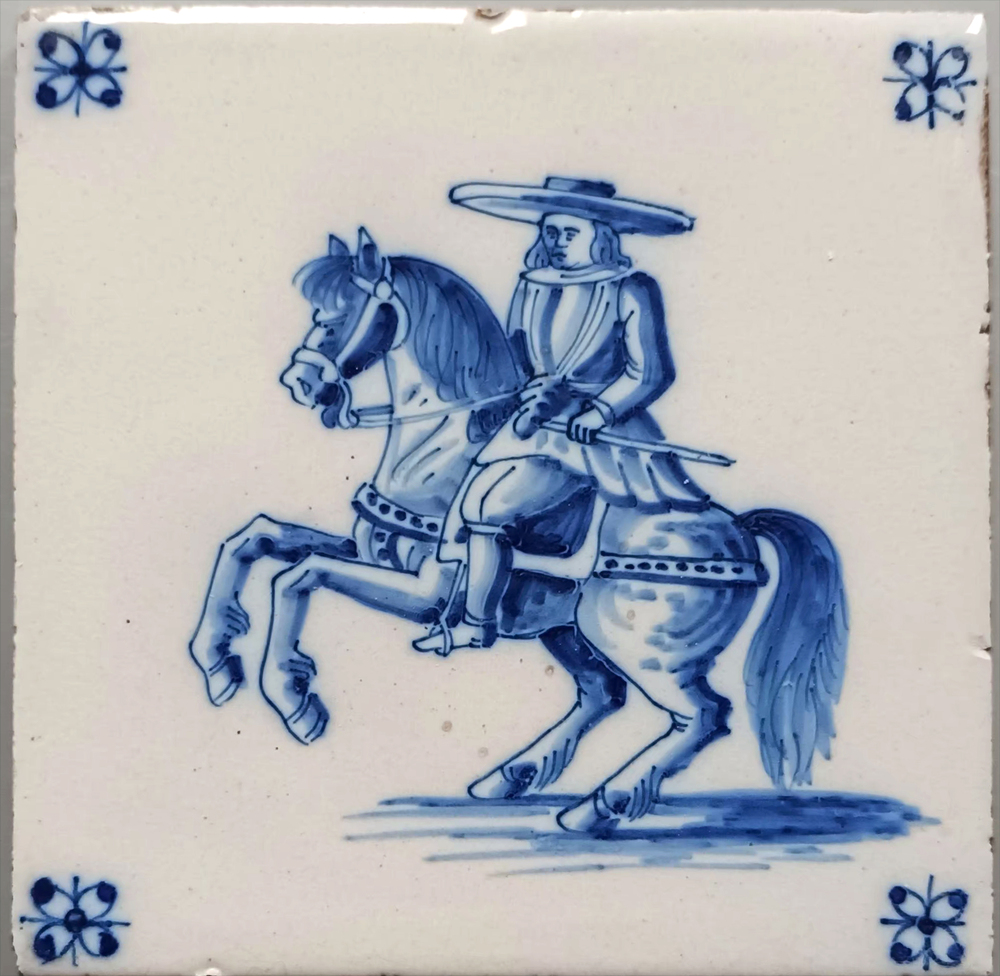 tegel van aardewerk met tinglazuur, voorstellende: h...