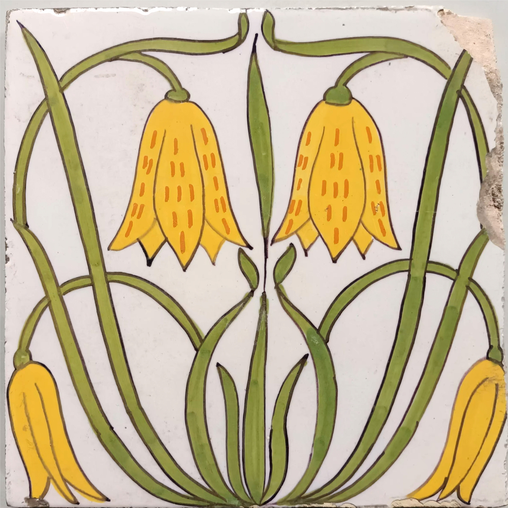 Tegel van keramiek met tinglazuur, voorstellende: or...