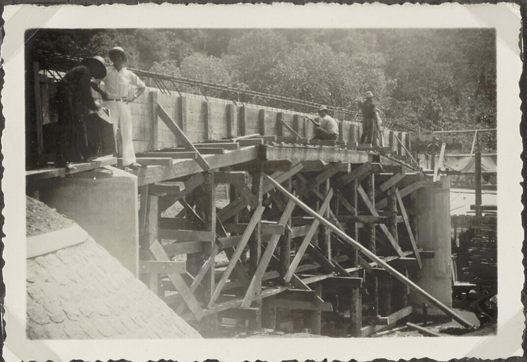 Brug in aanbouw met Javaanse arbeiders