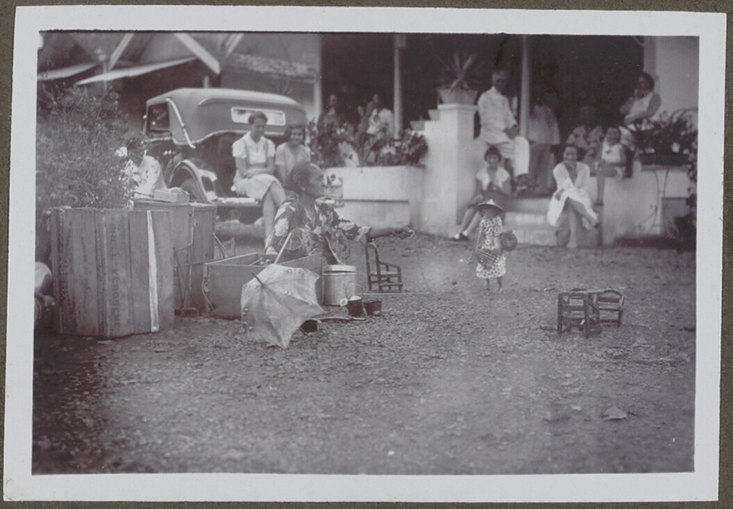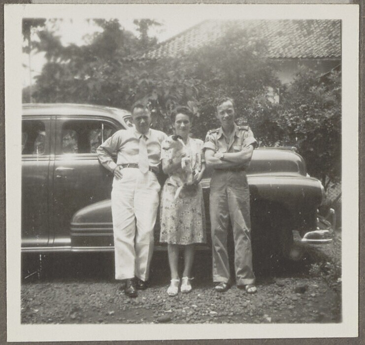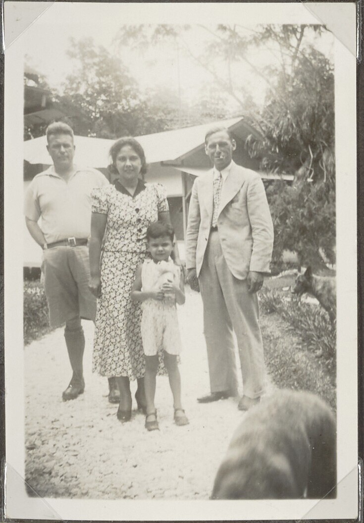 Europese man en vrouw en Javaanse vrouw met kind voo...
