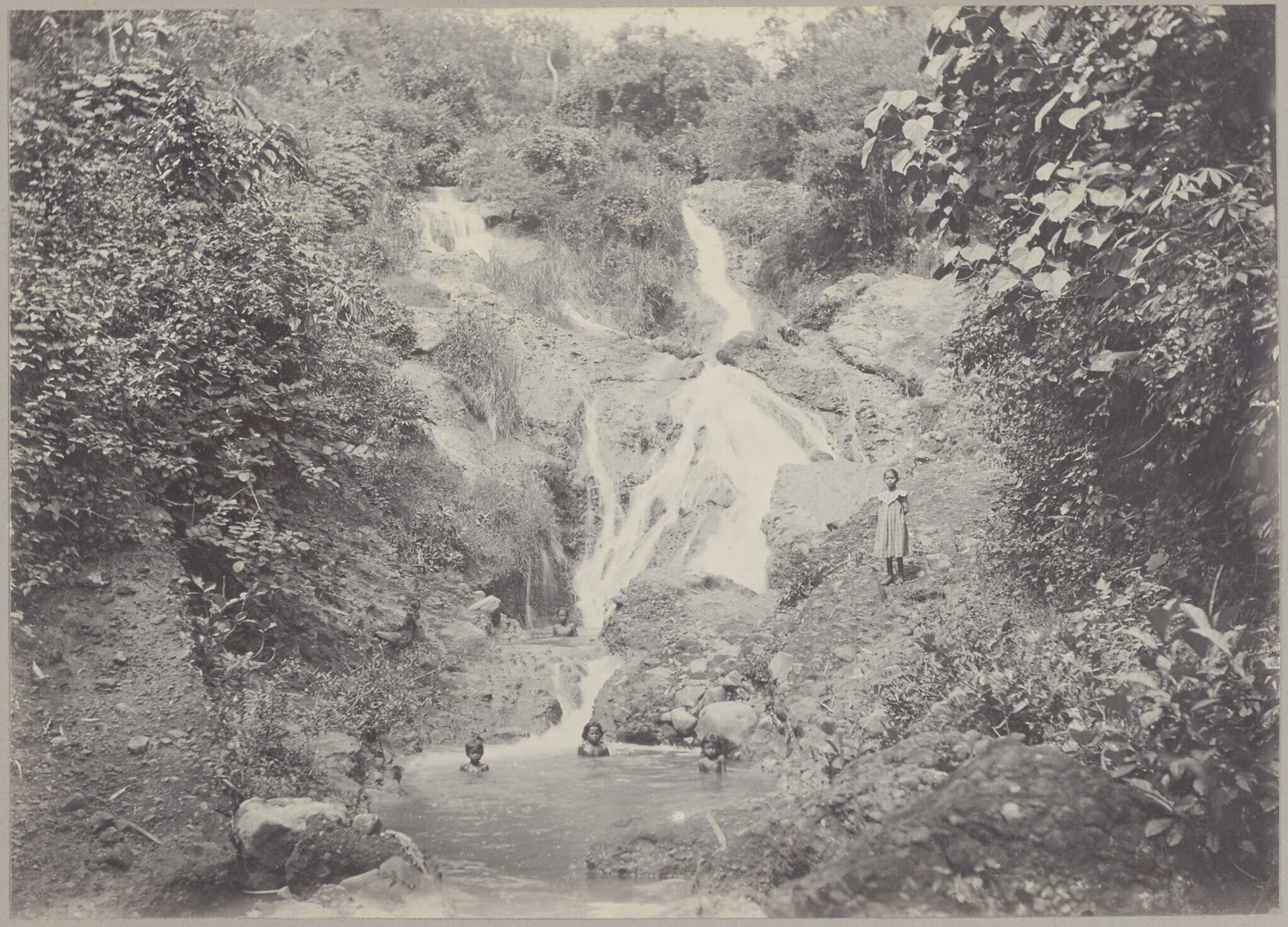 Javaanse kinderen in meertje bij een waterval in de ...