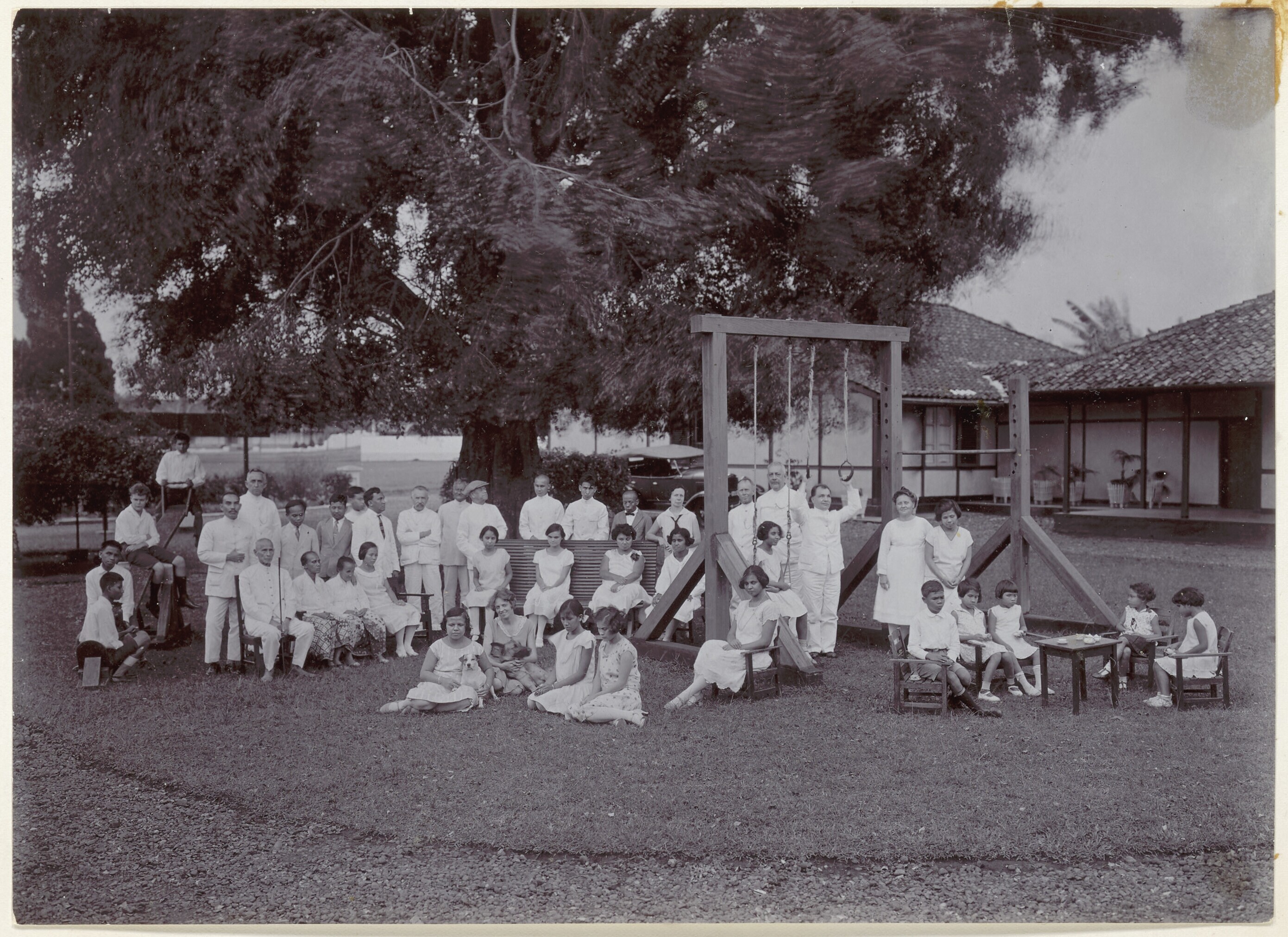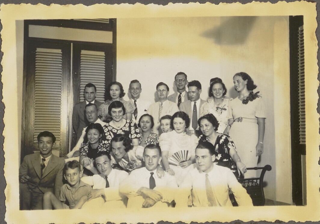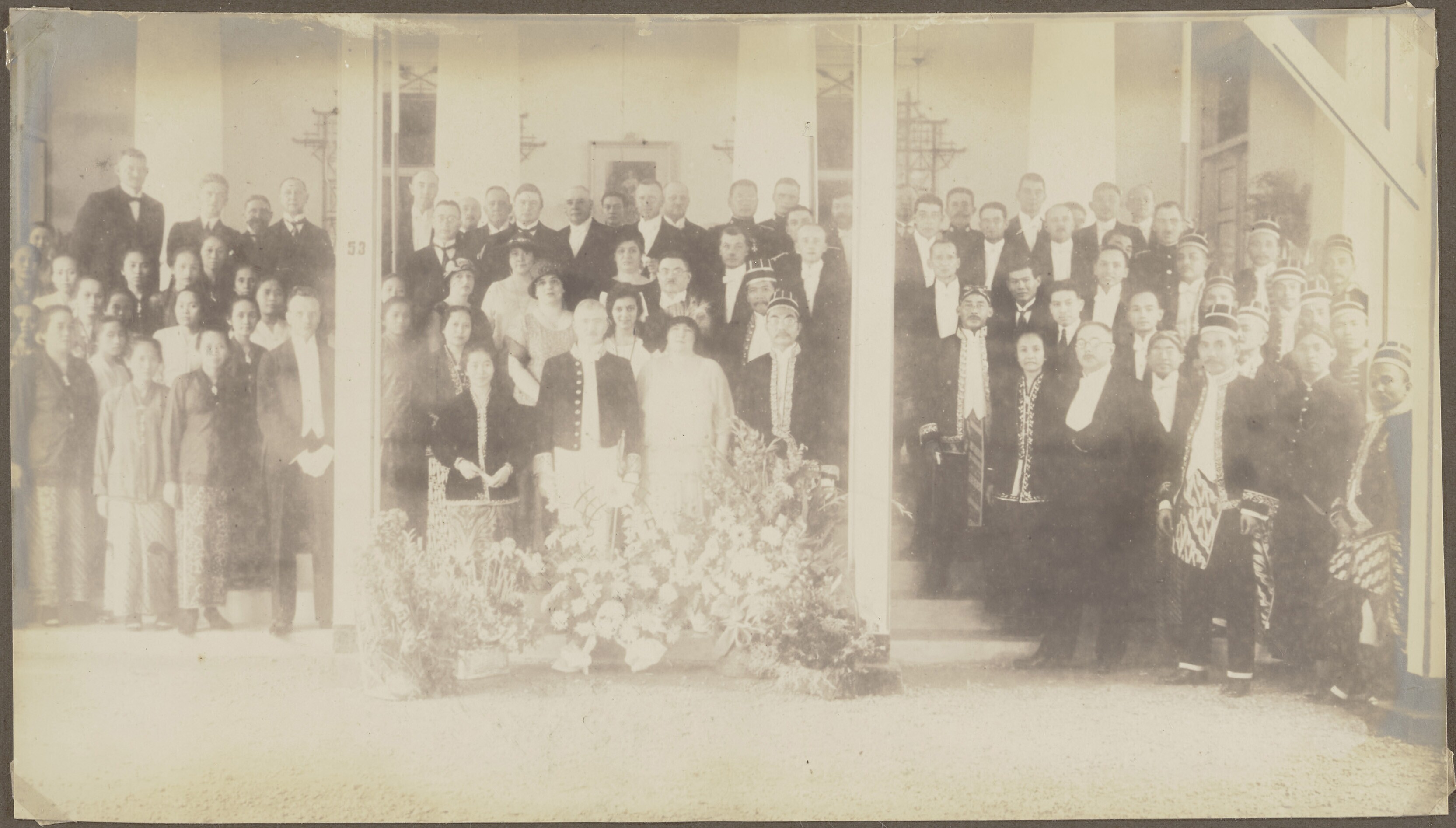 Groepsfoto van Javaanse en Europese mensen bij huwelijk