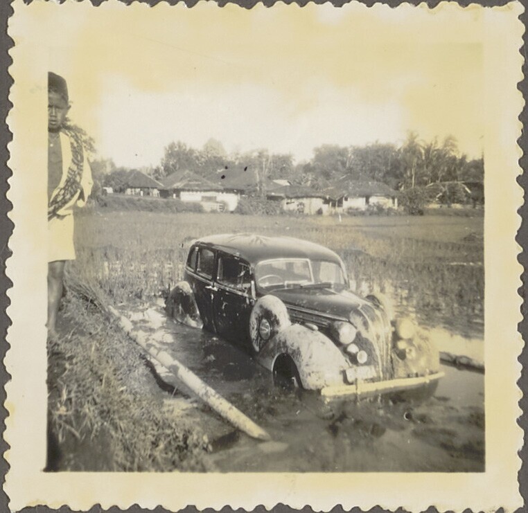 Personenauto in het rijstveld