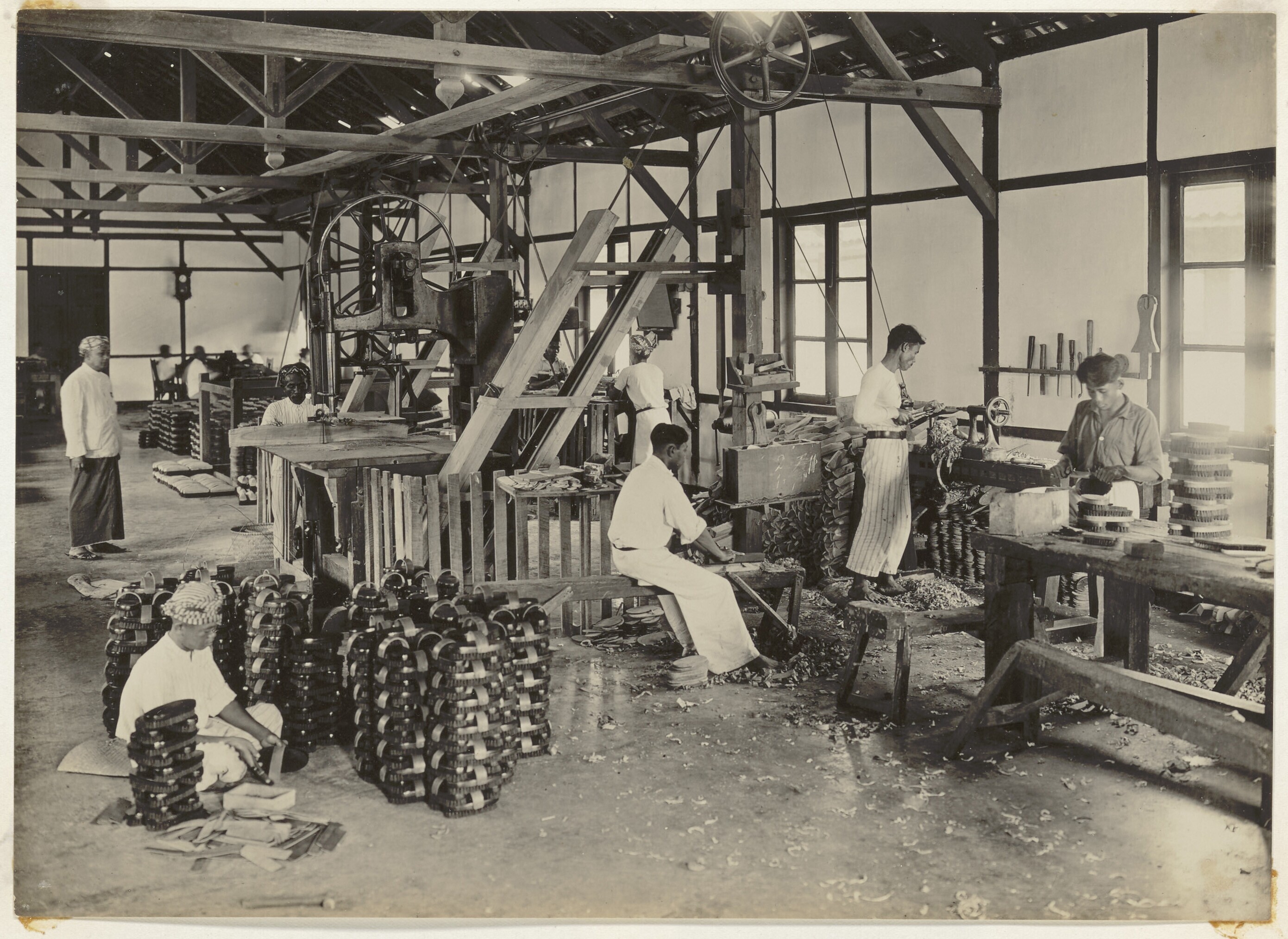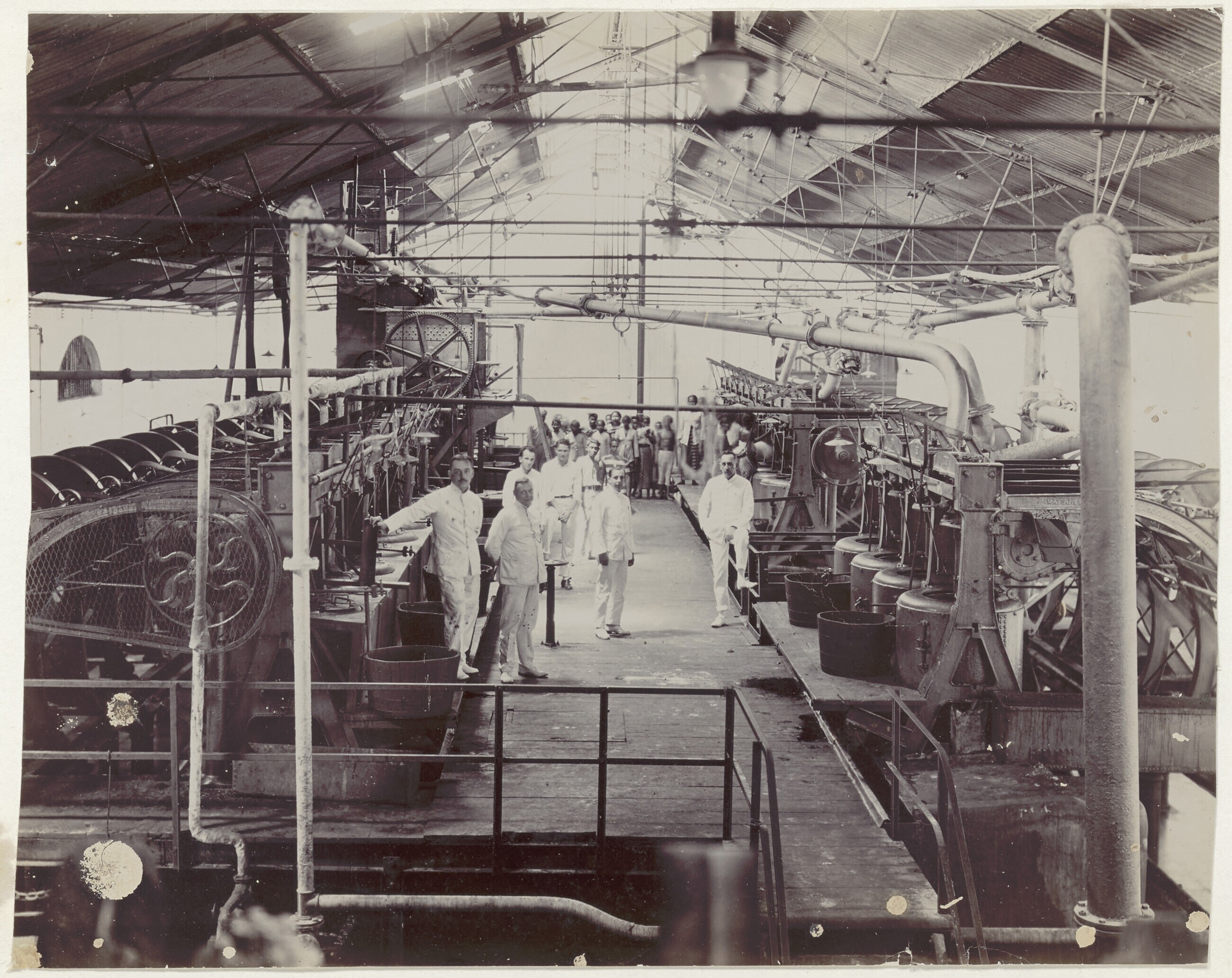 Uitzicht op machinekamer van suikerfabriek Bagoe