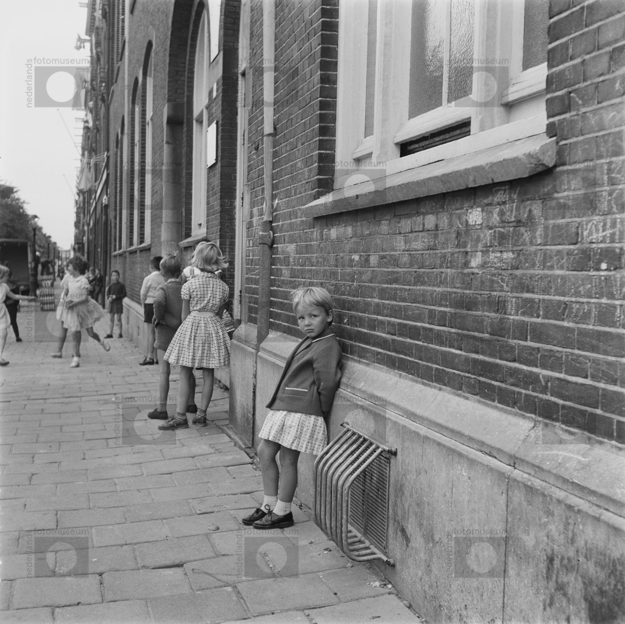 Amsterdam. Kind in ondergoed klimt van de stoep.