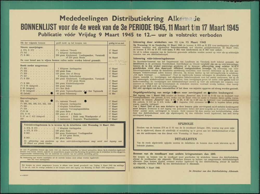 Poster Mededeelingen Distributiekring Alkemade, 8 ap...