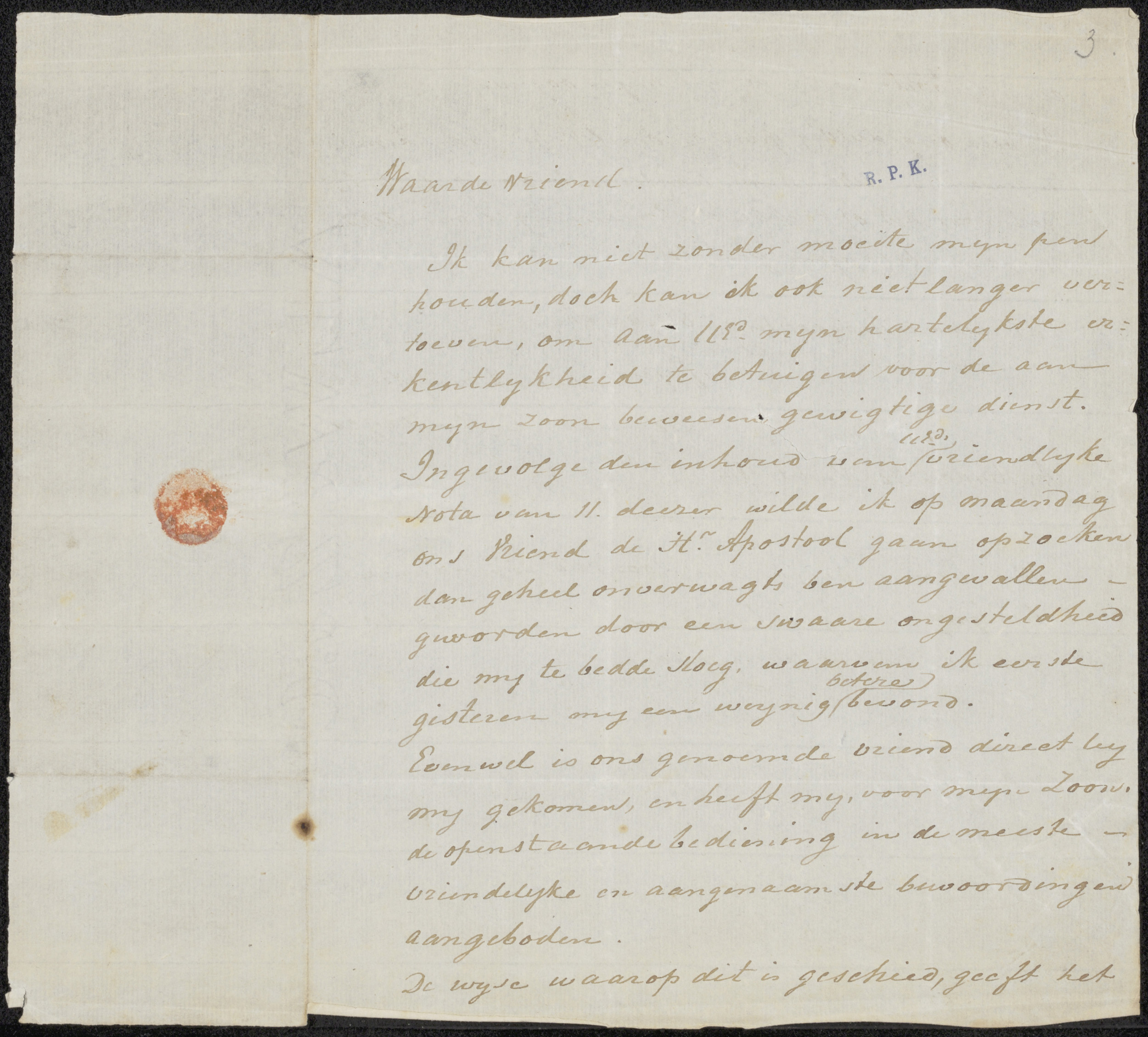 Brief aan Johannes Jacobus Franciscus Wap
