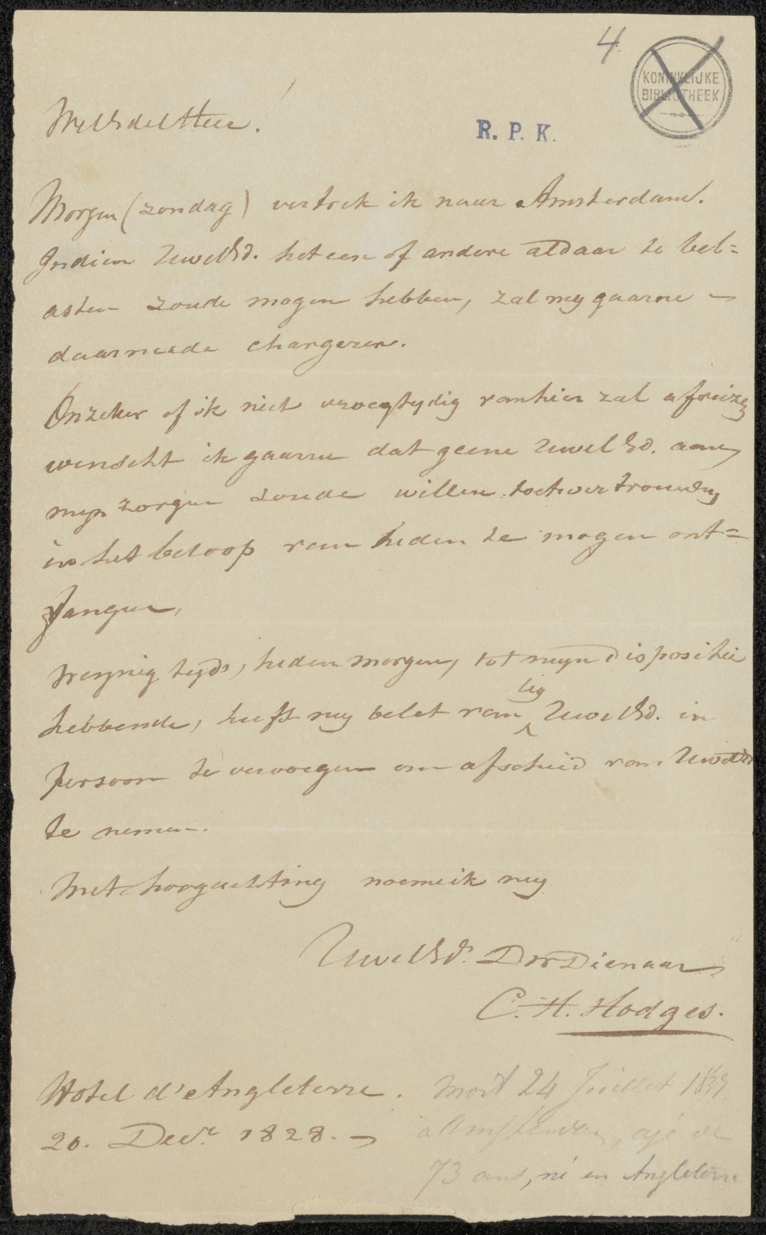 Brief aan Charles Howard Hodges