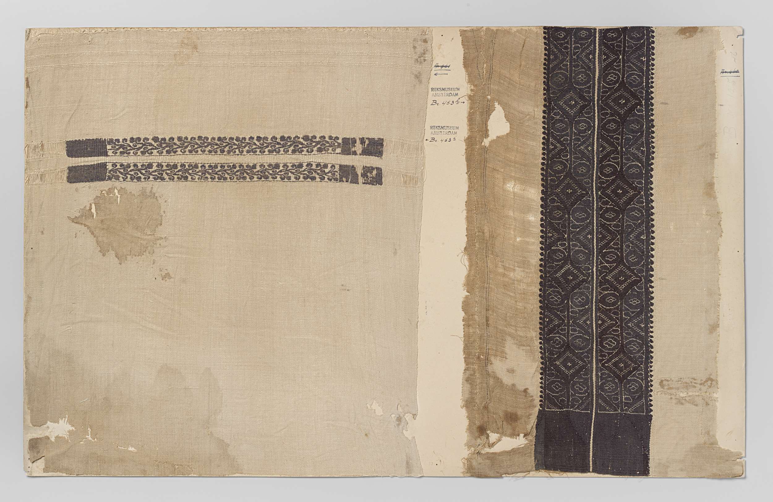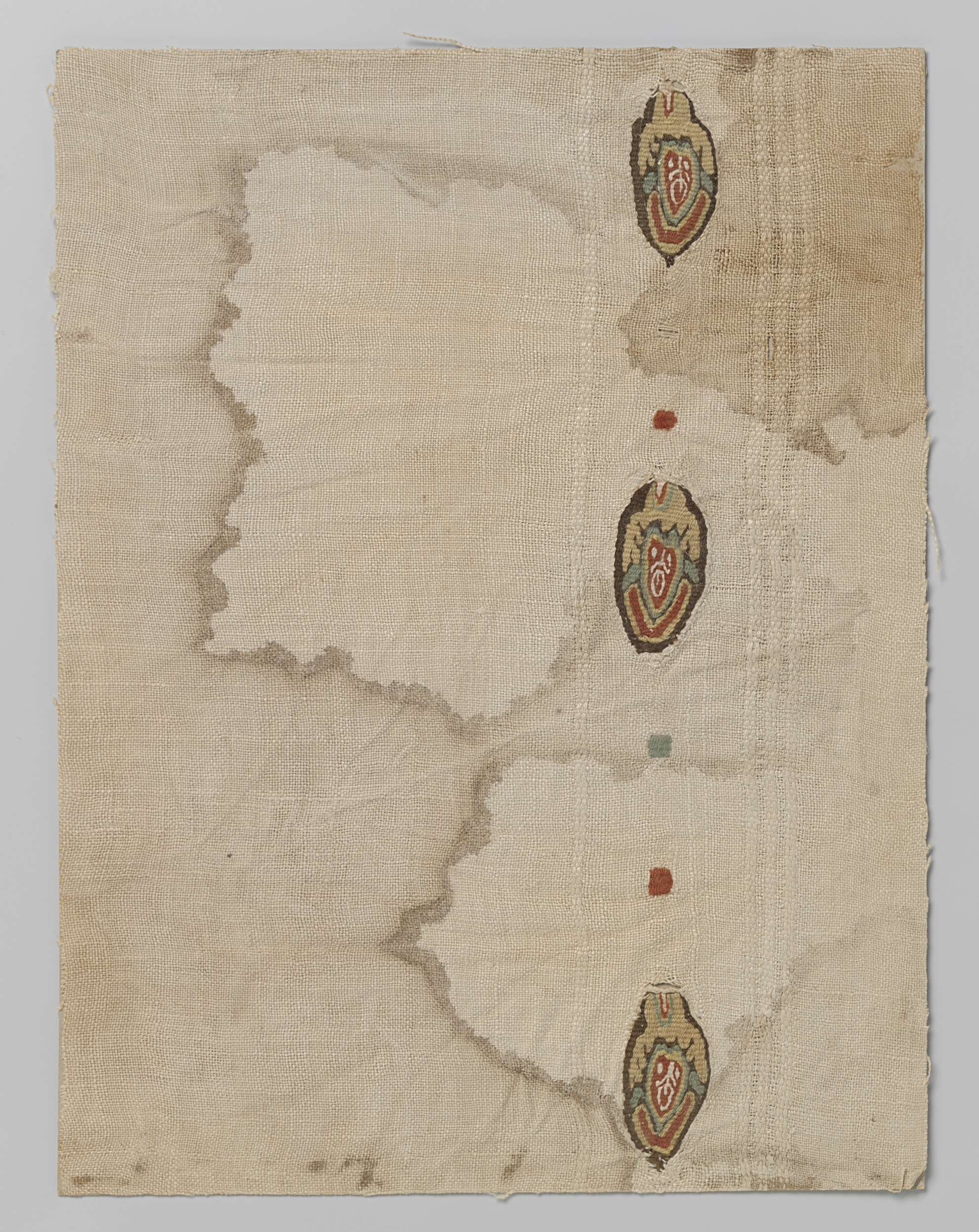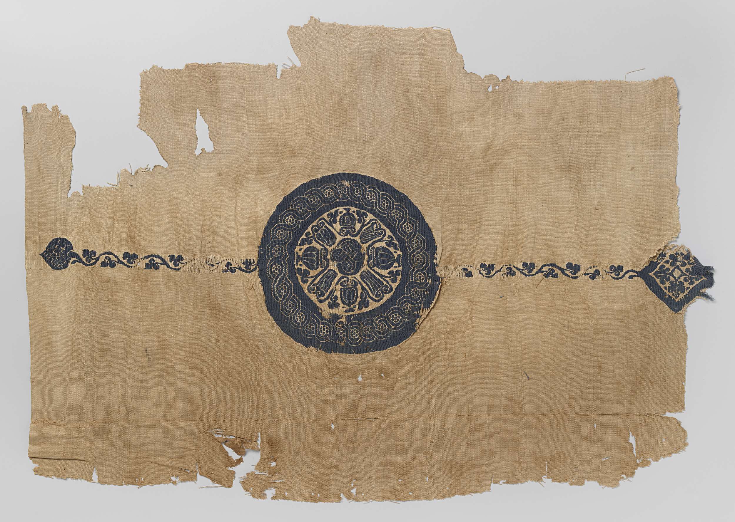 Weefselfragment met versiering in tapijtwerk