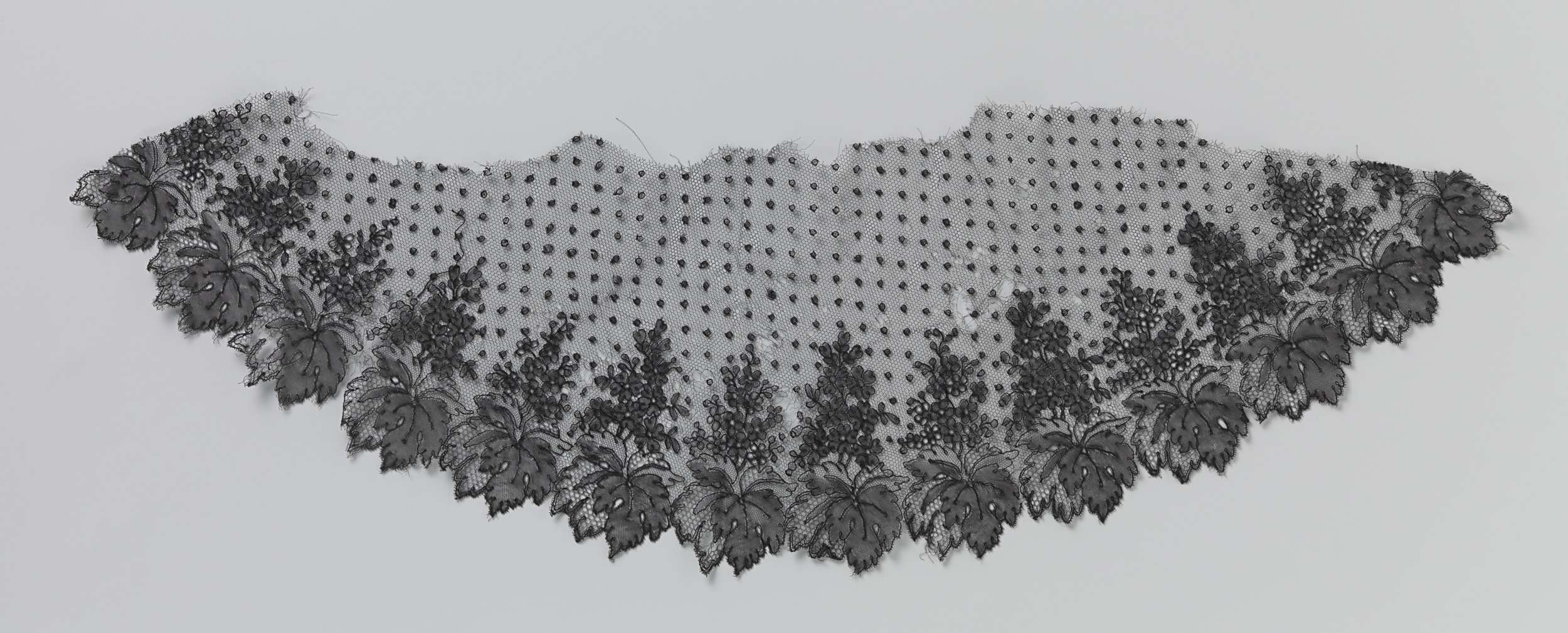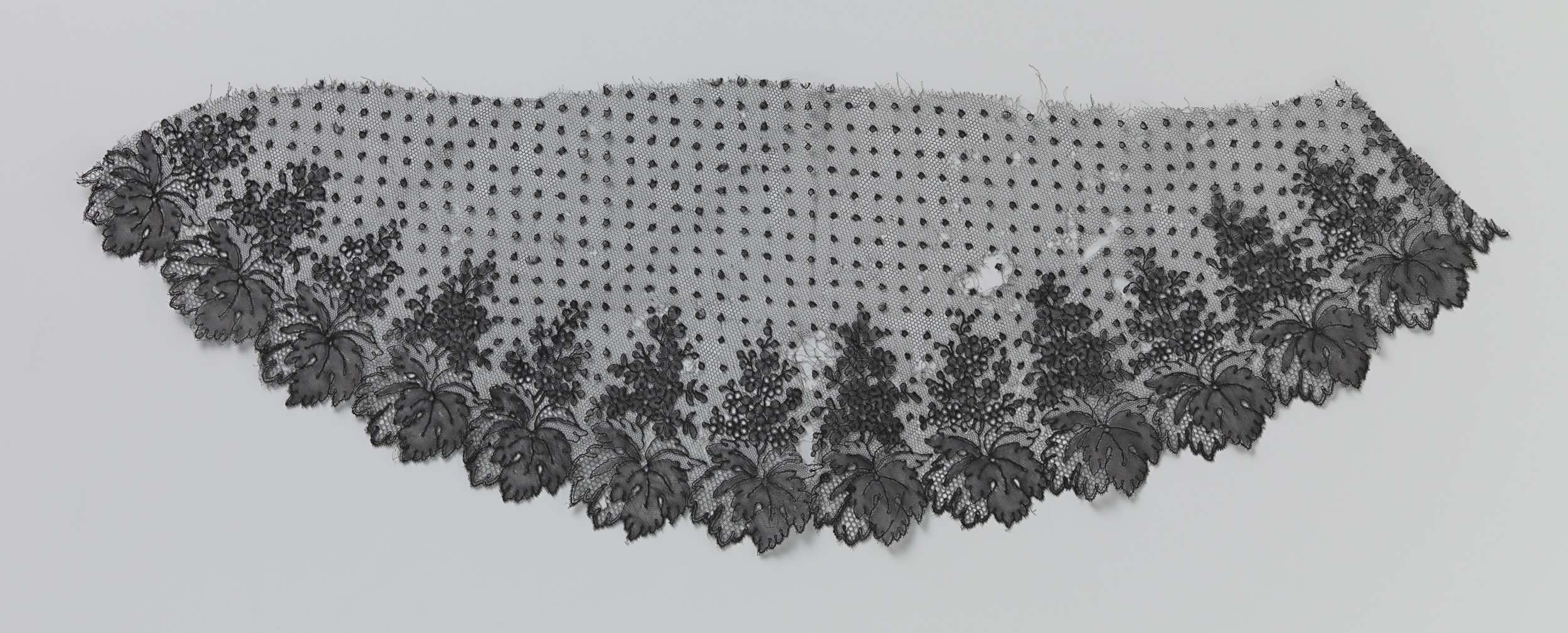 Fragment zijdeweefsel met kantpatroon en bloemenranken