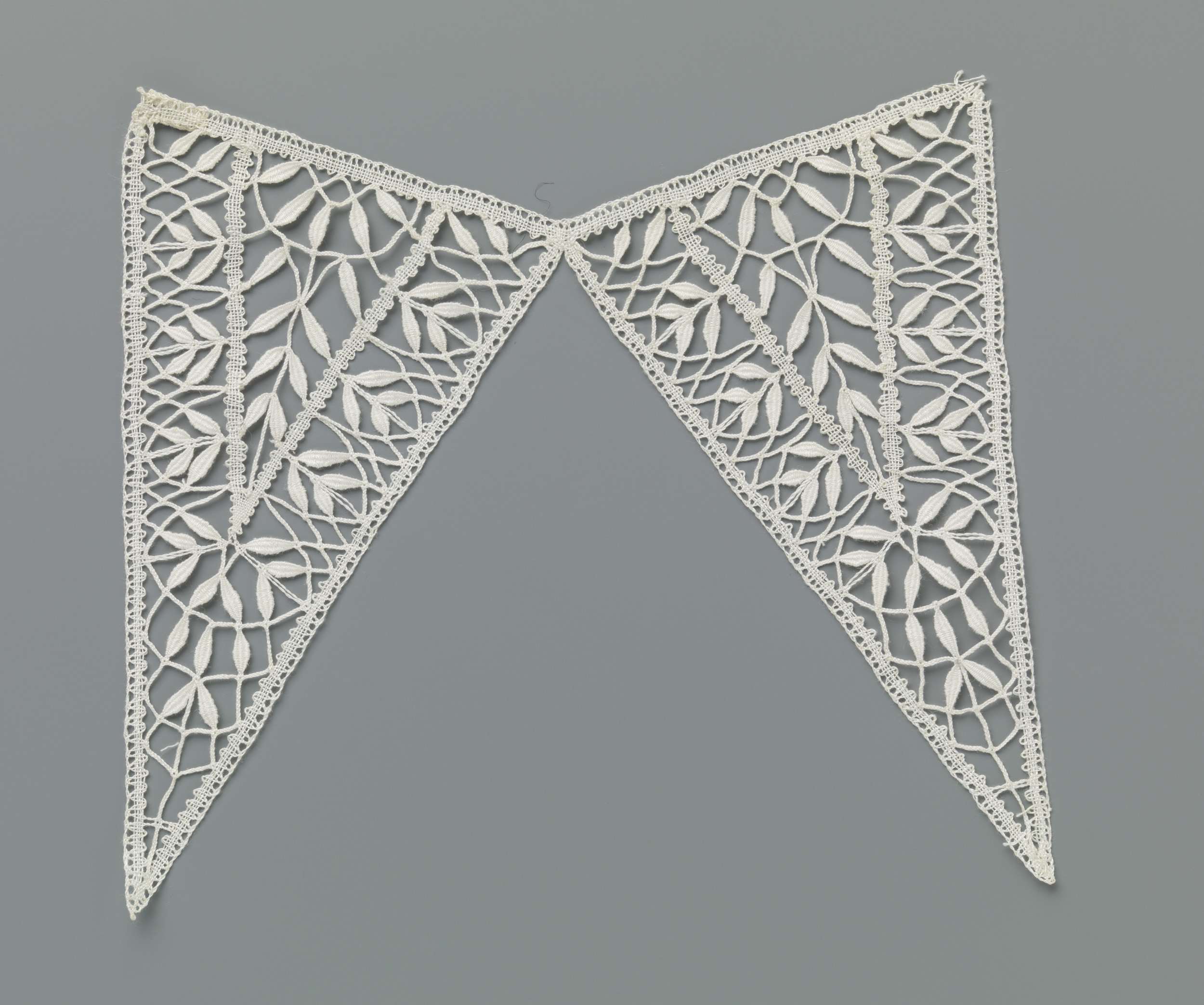 Twee puntschulpen van kloskant met spitse blaadjes