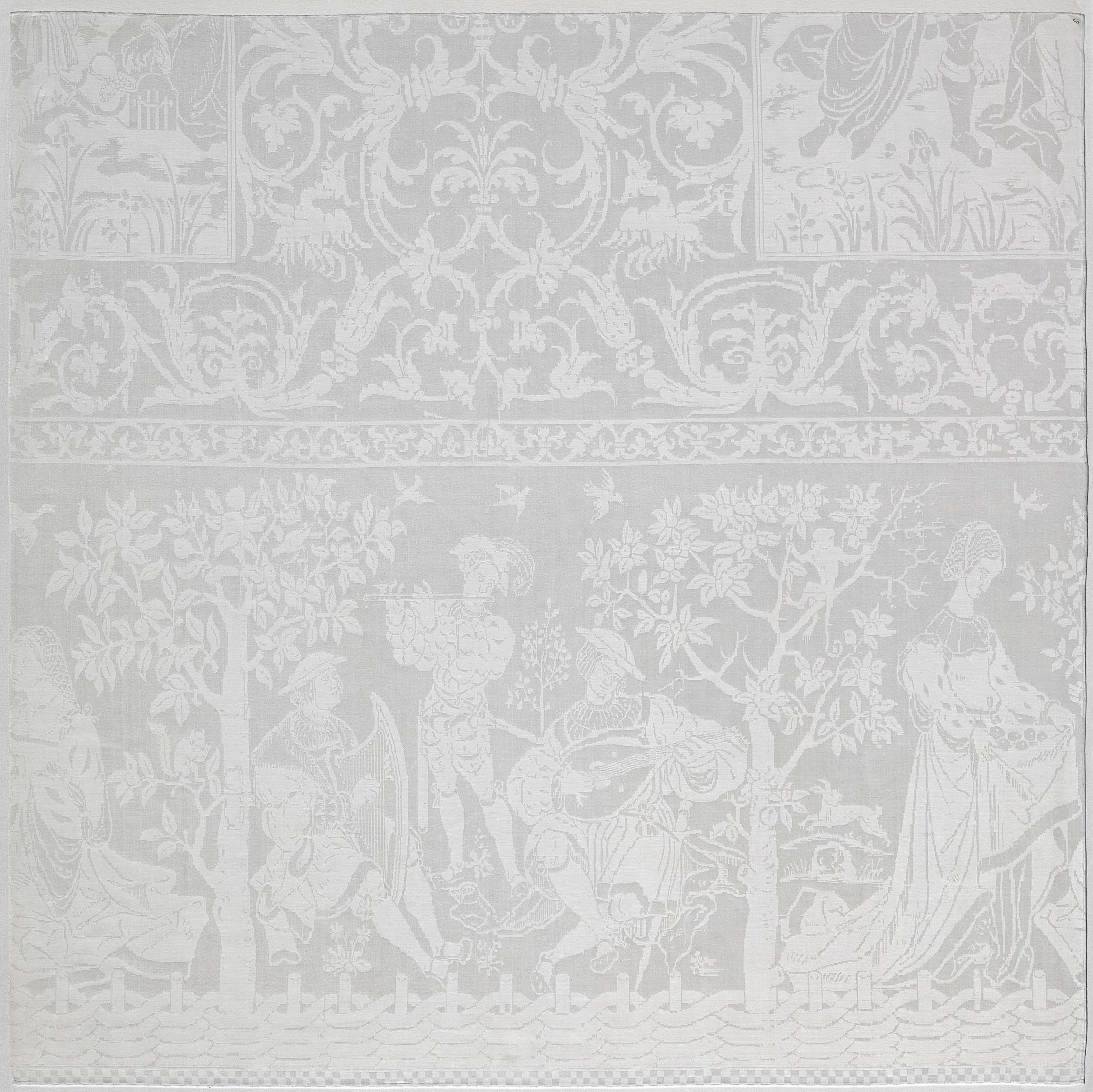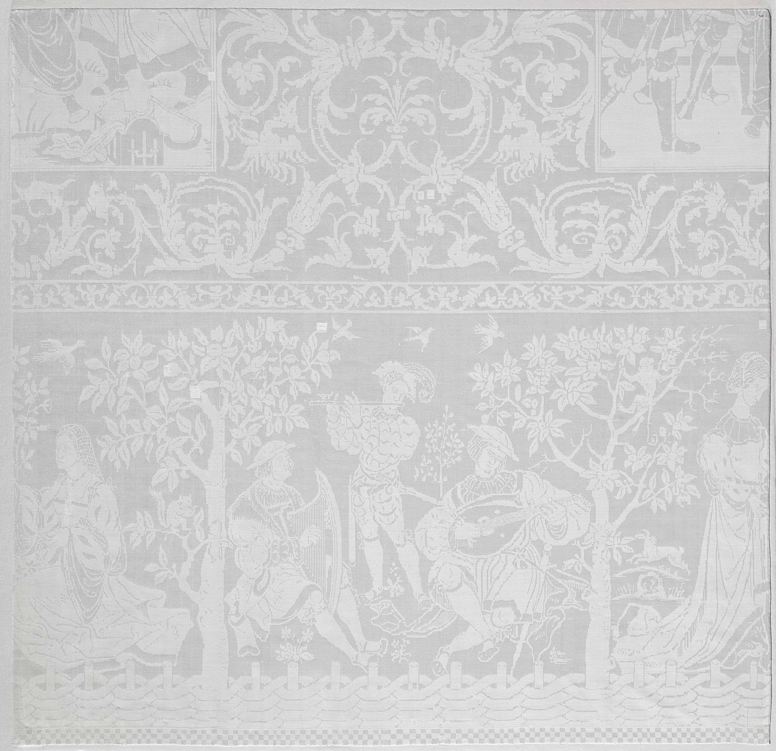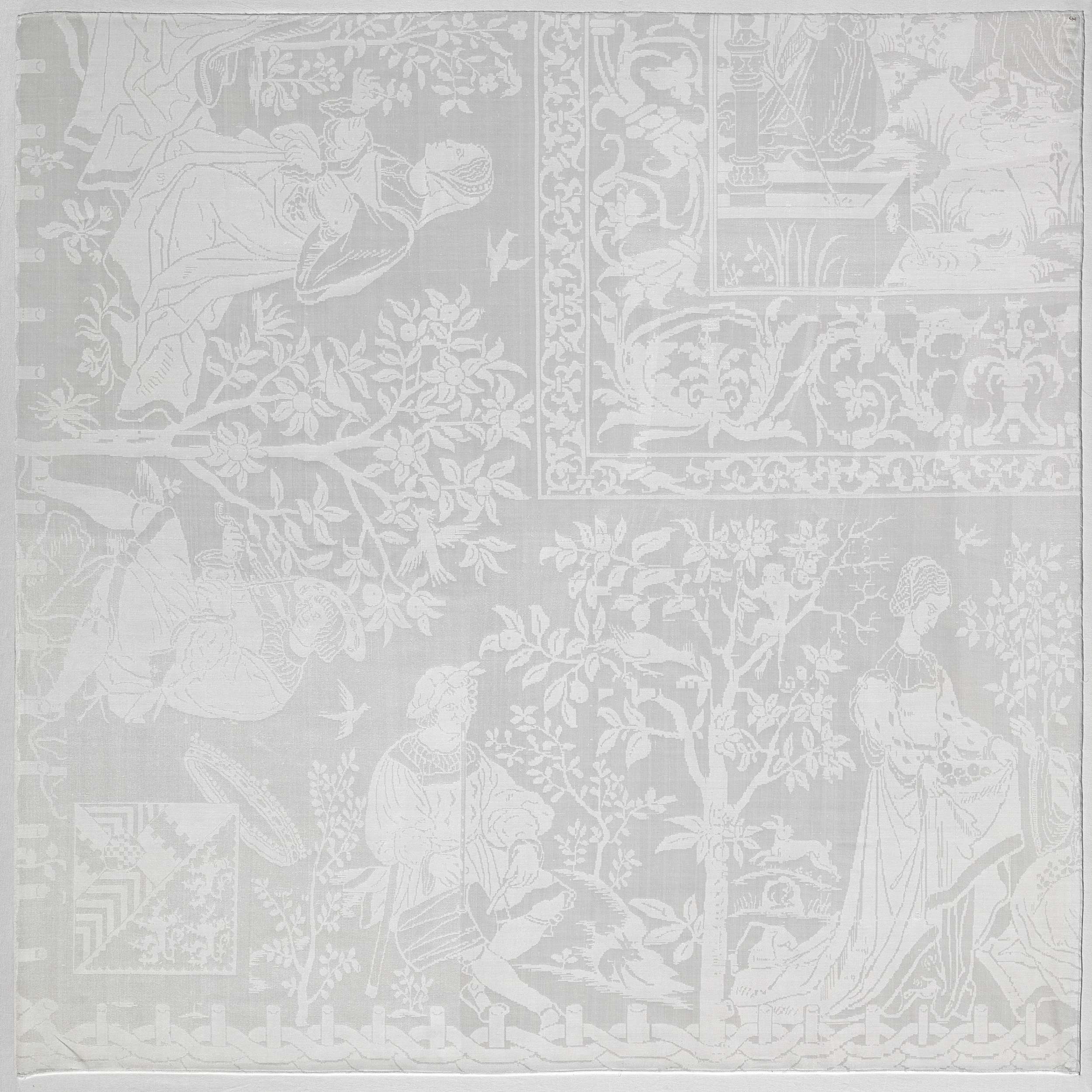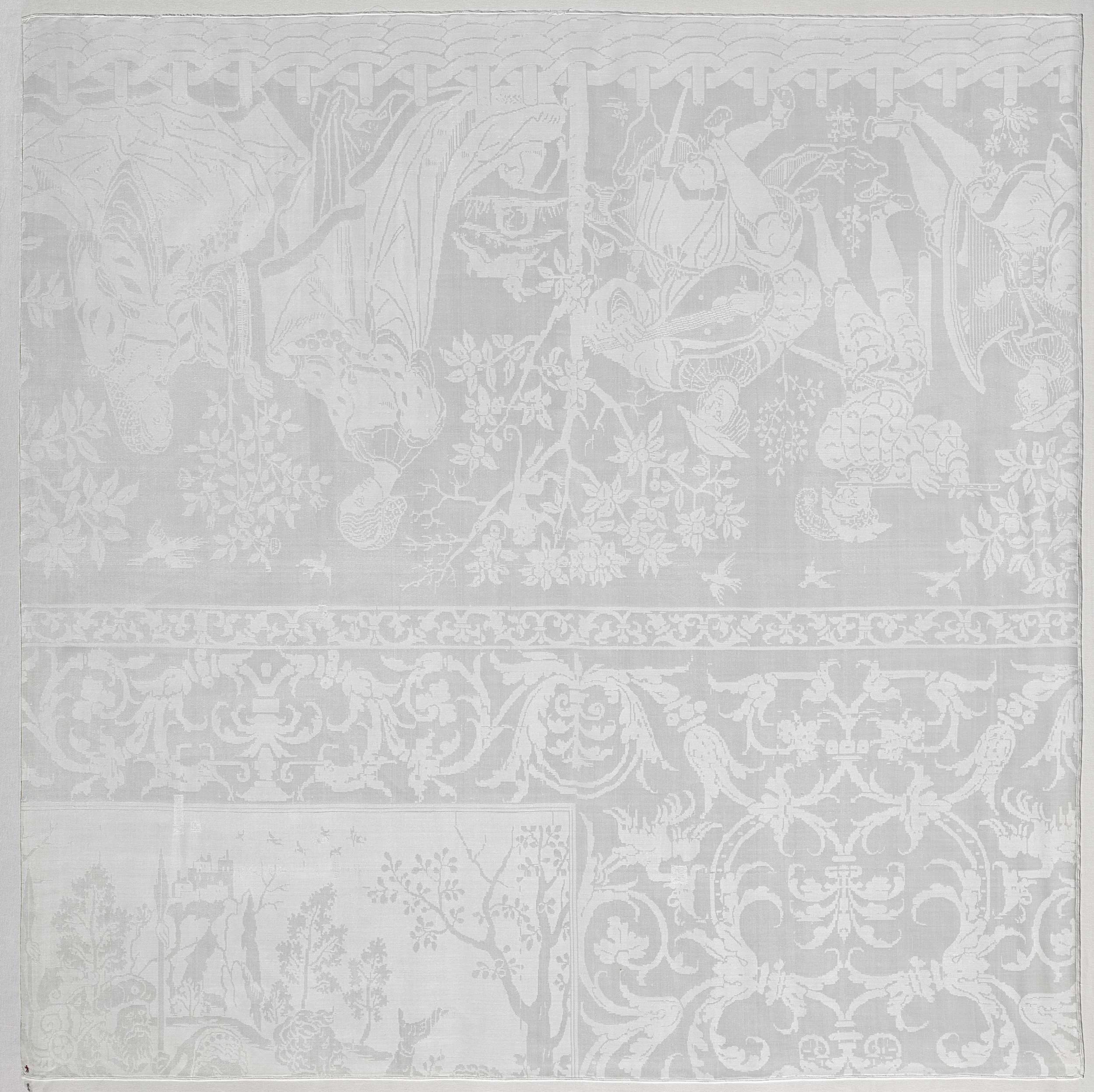 Fragment van een tafellaken van linnendamast, voorst...