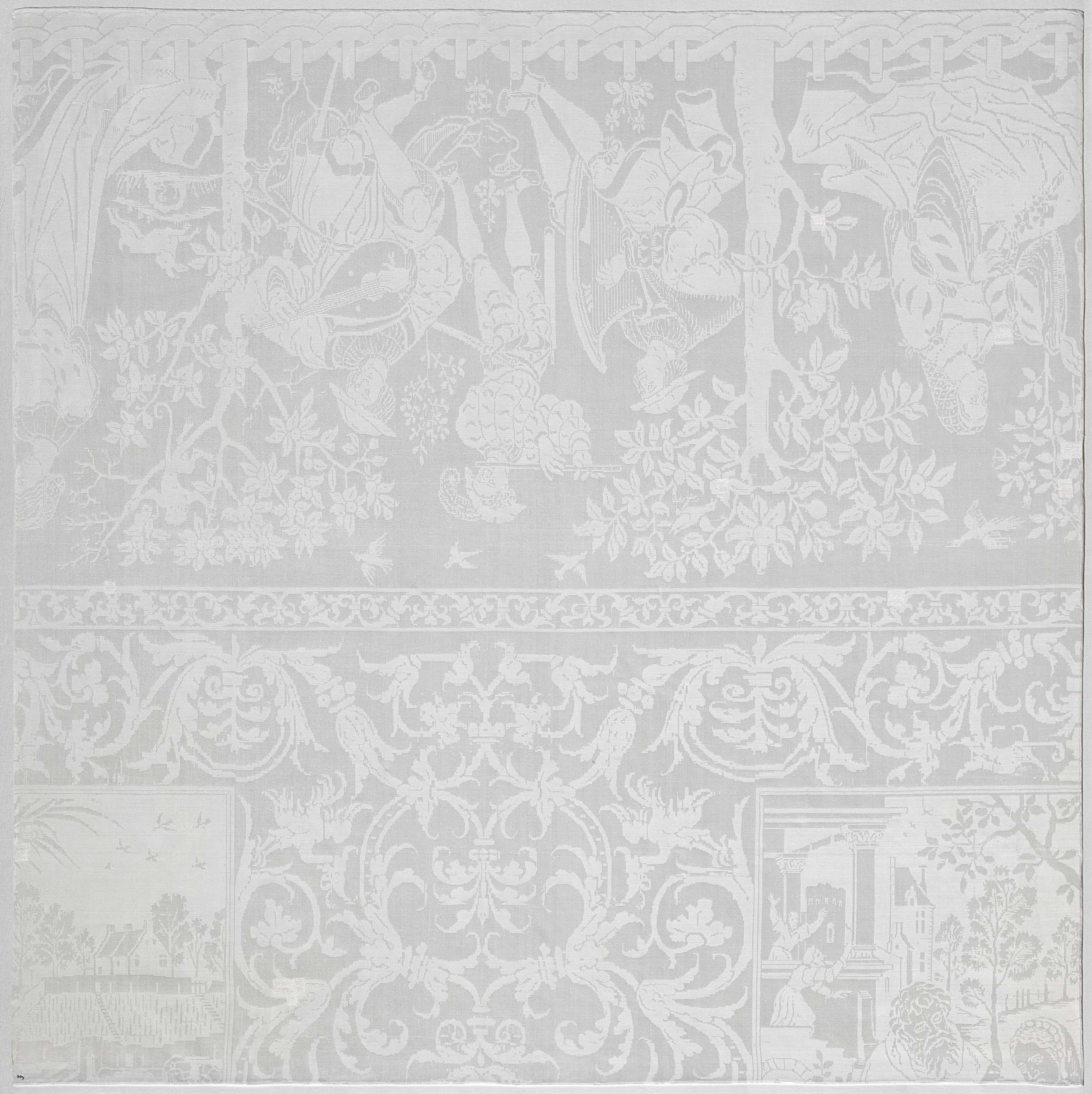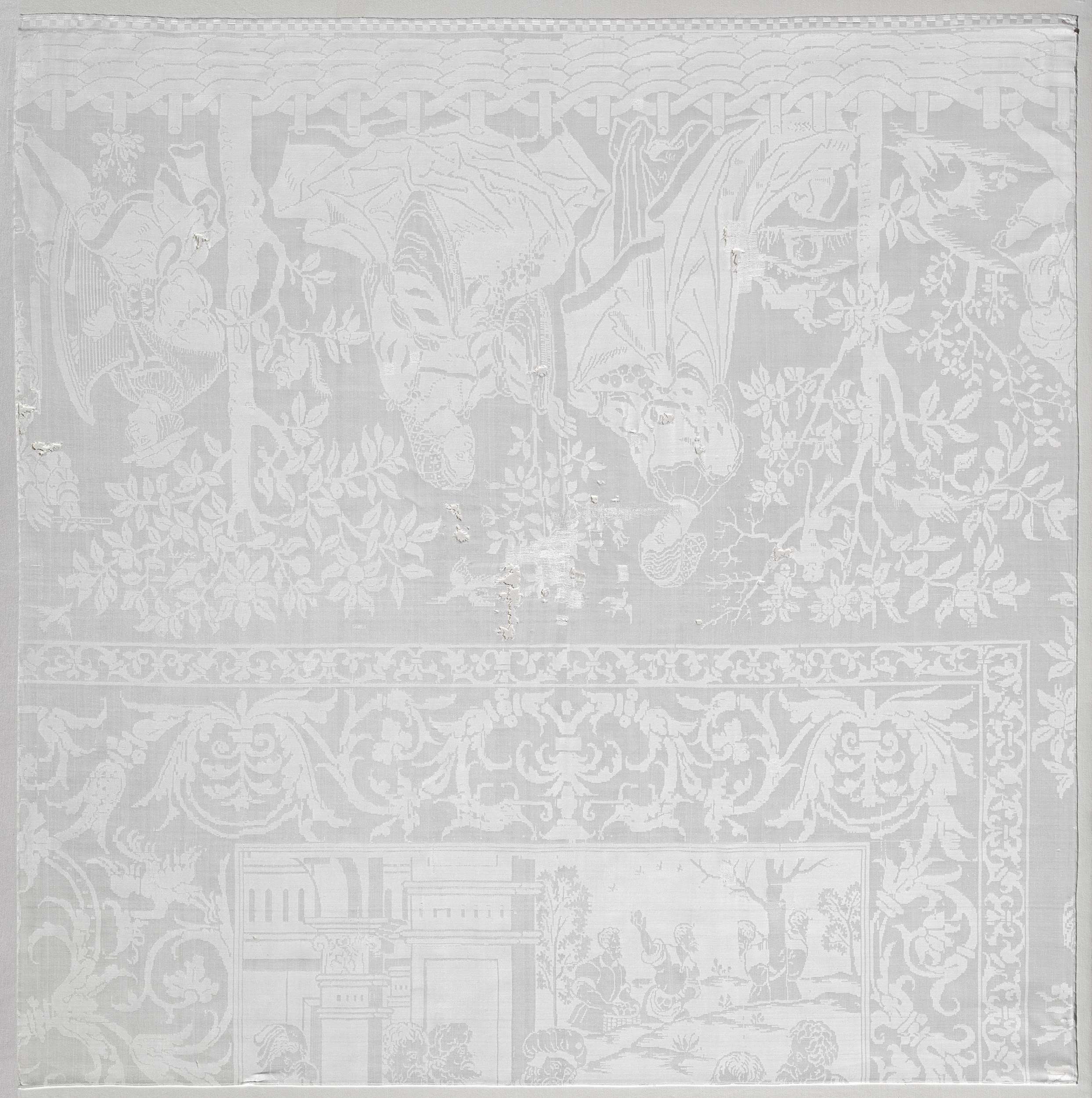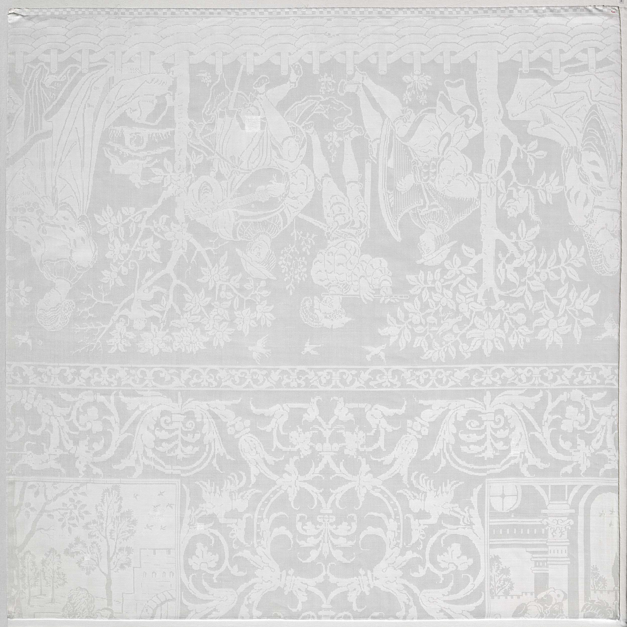 Fragment van een tafellaken van linnendamast met voo...