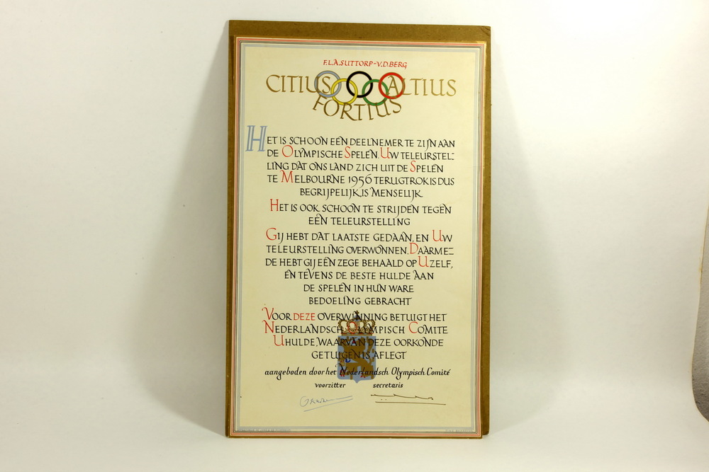Olympisch diploma van J. van den Houtenvan de Olympi...