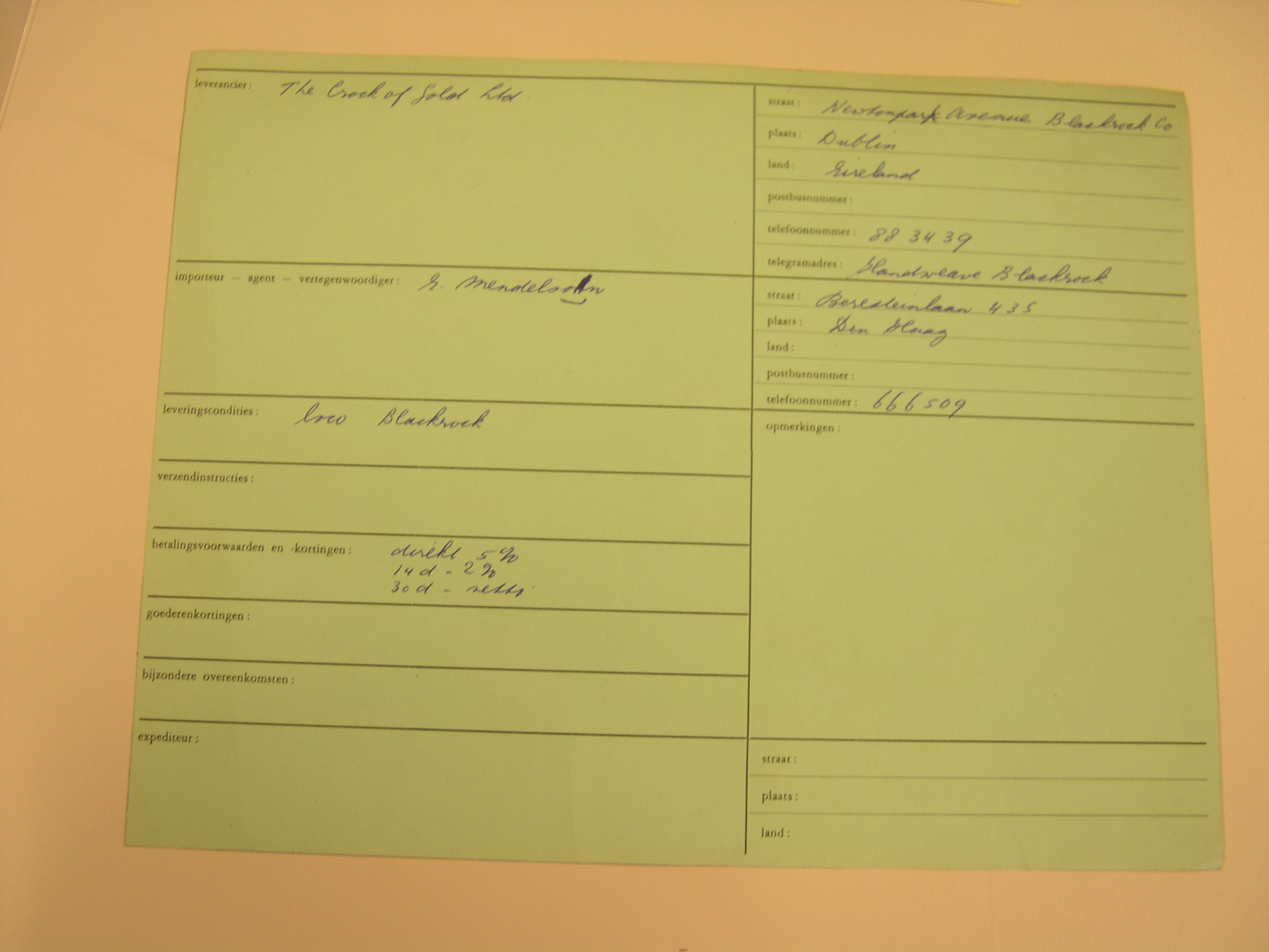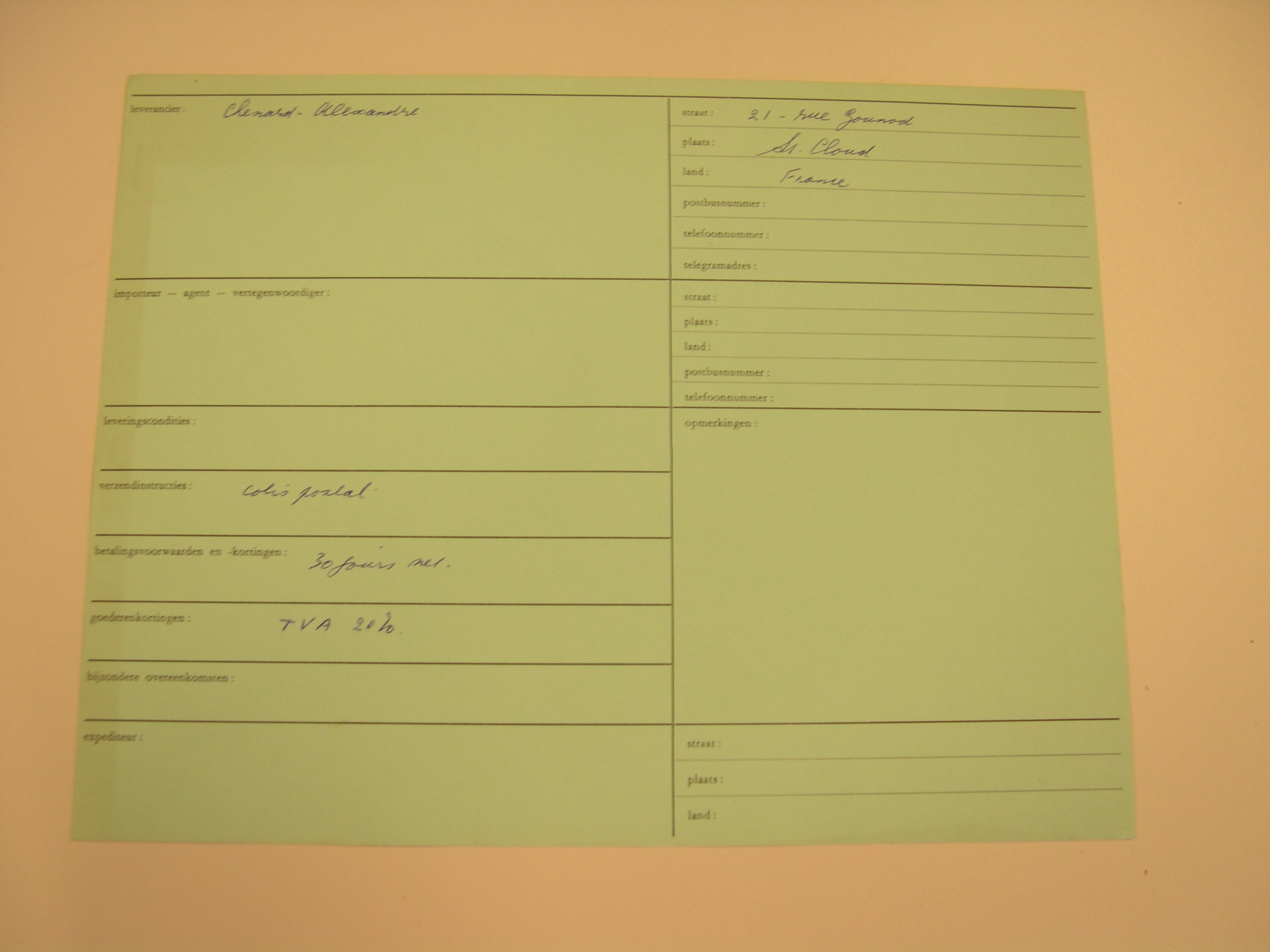 Formulier leverancier