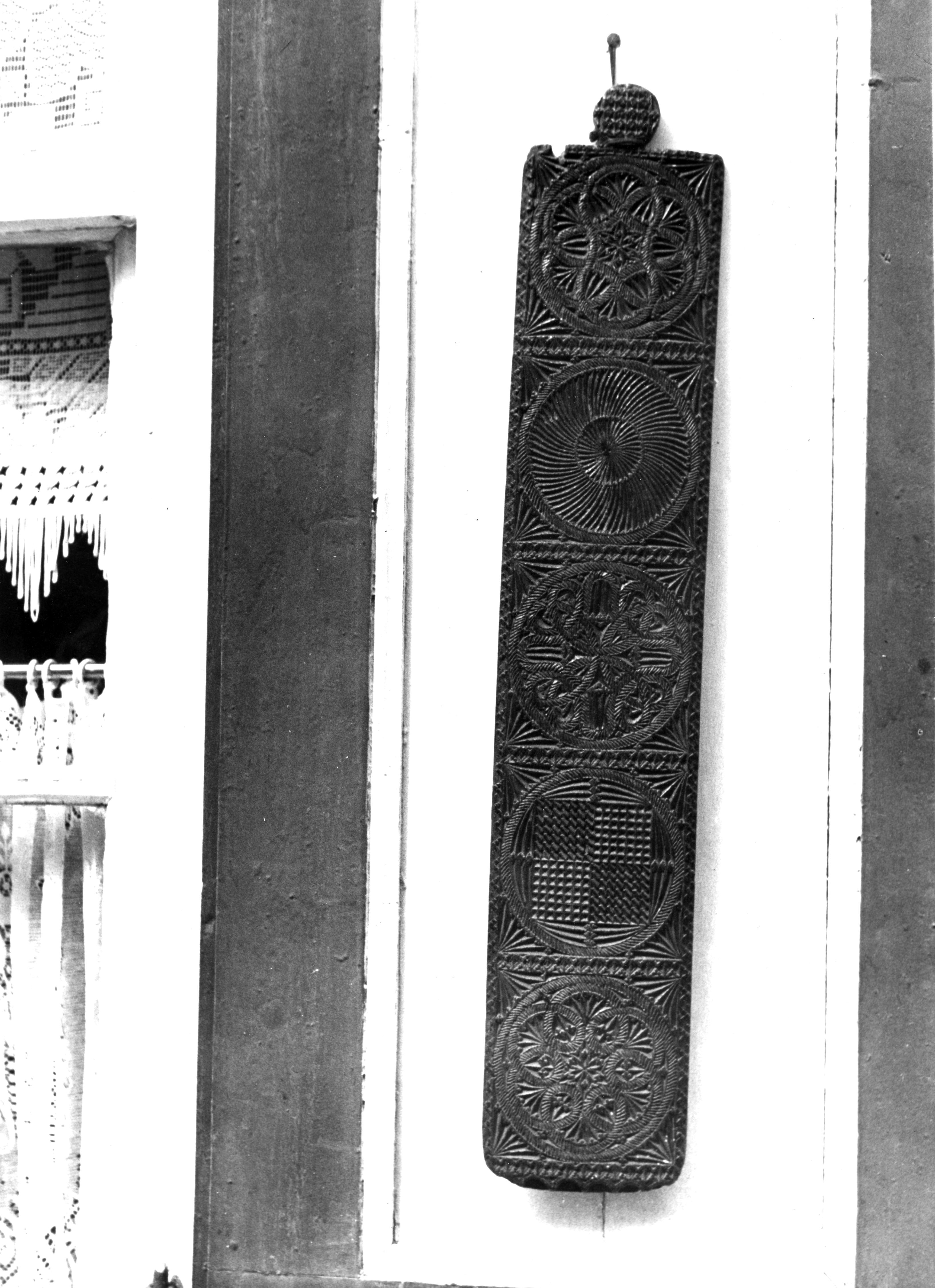 Detail van een merklap, Marken, 1943 (zwart-wit foto)