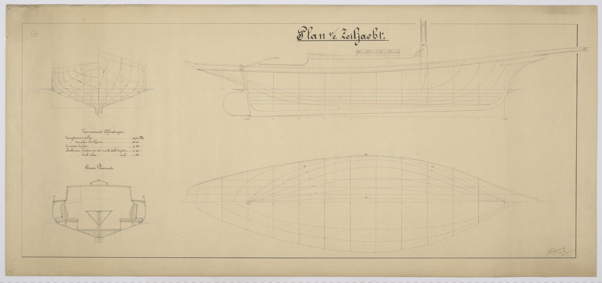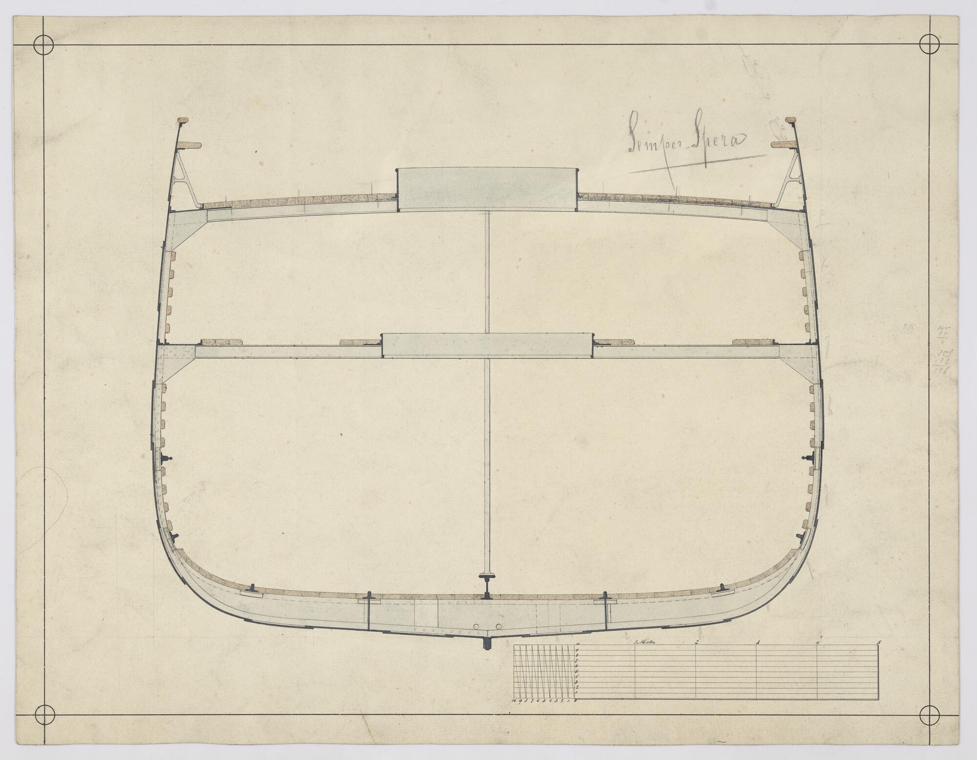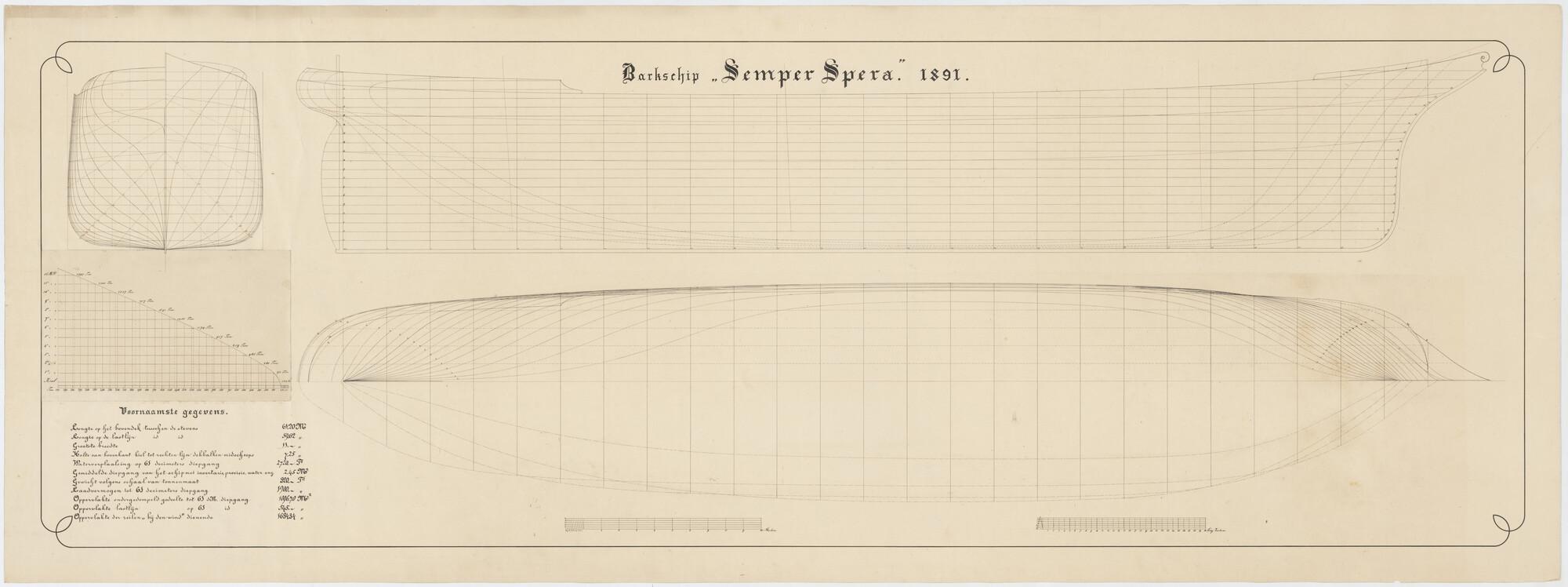 Lijnenplan van het barkschip Semper Spera (Houd alti...
