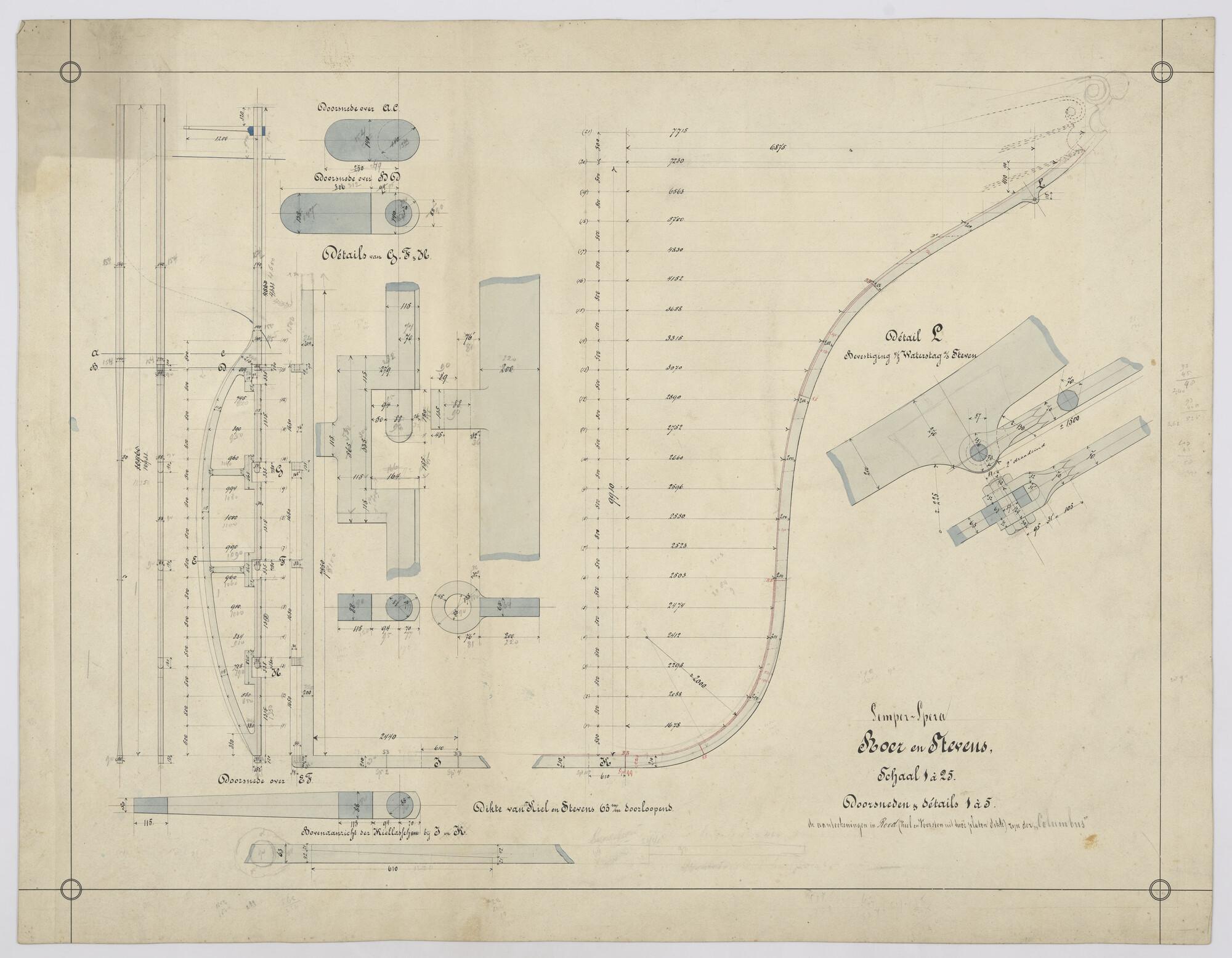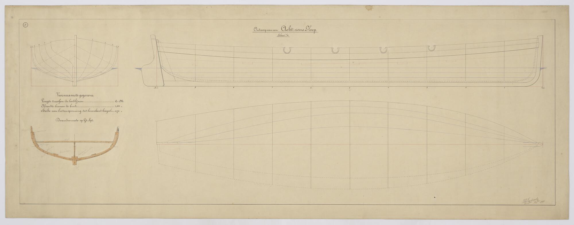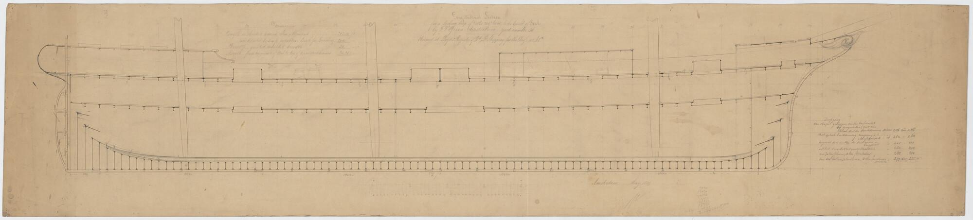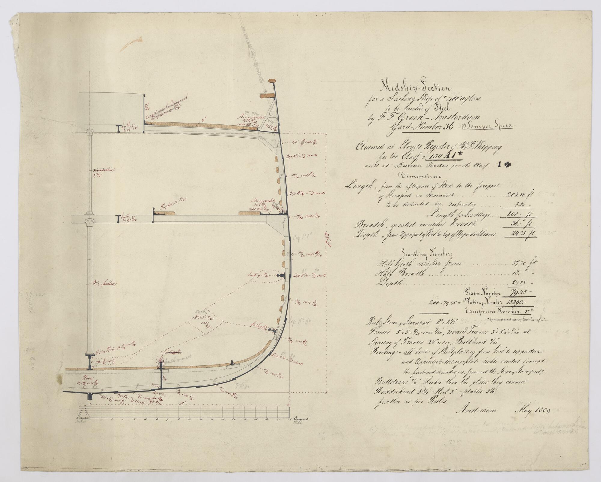 Lijnenplan van het barkschip Semper Spera (Houd alti...