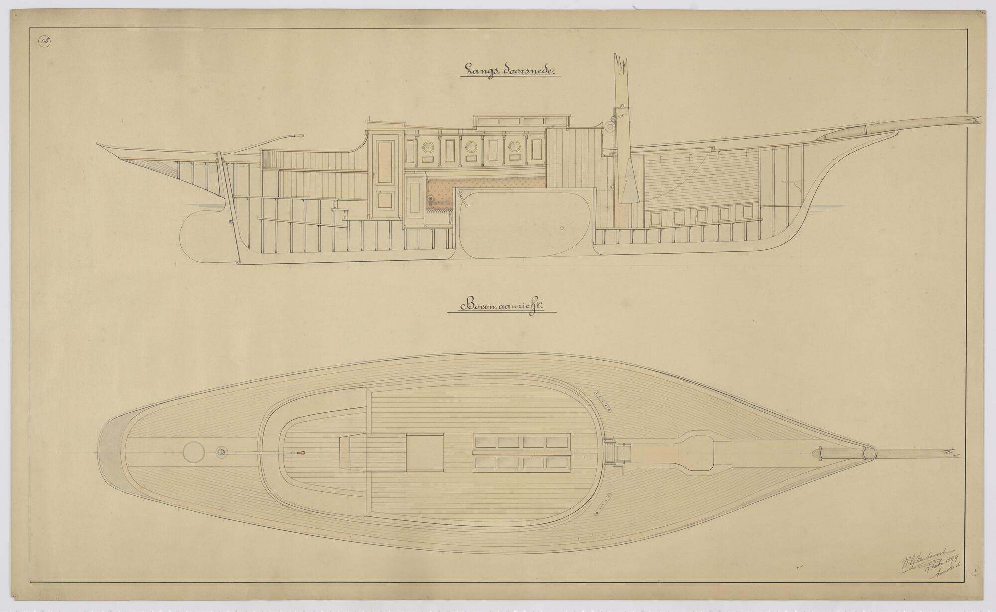 Indelingsplan van een midzwaard zeiljacht van 14.70 ...