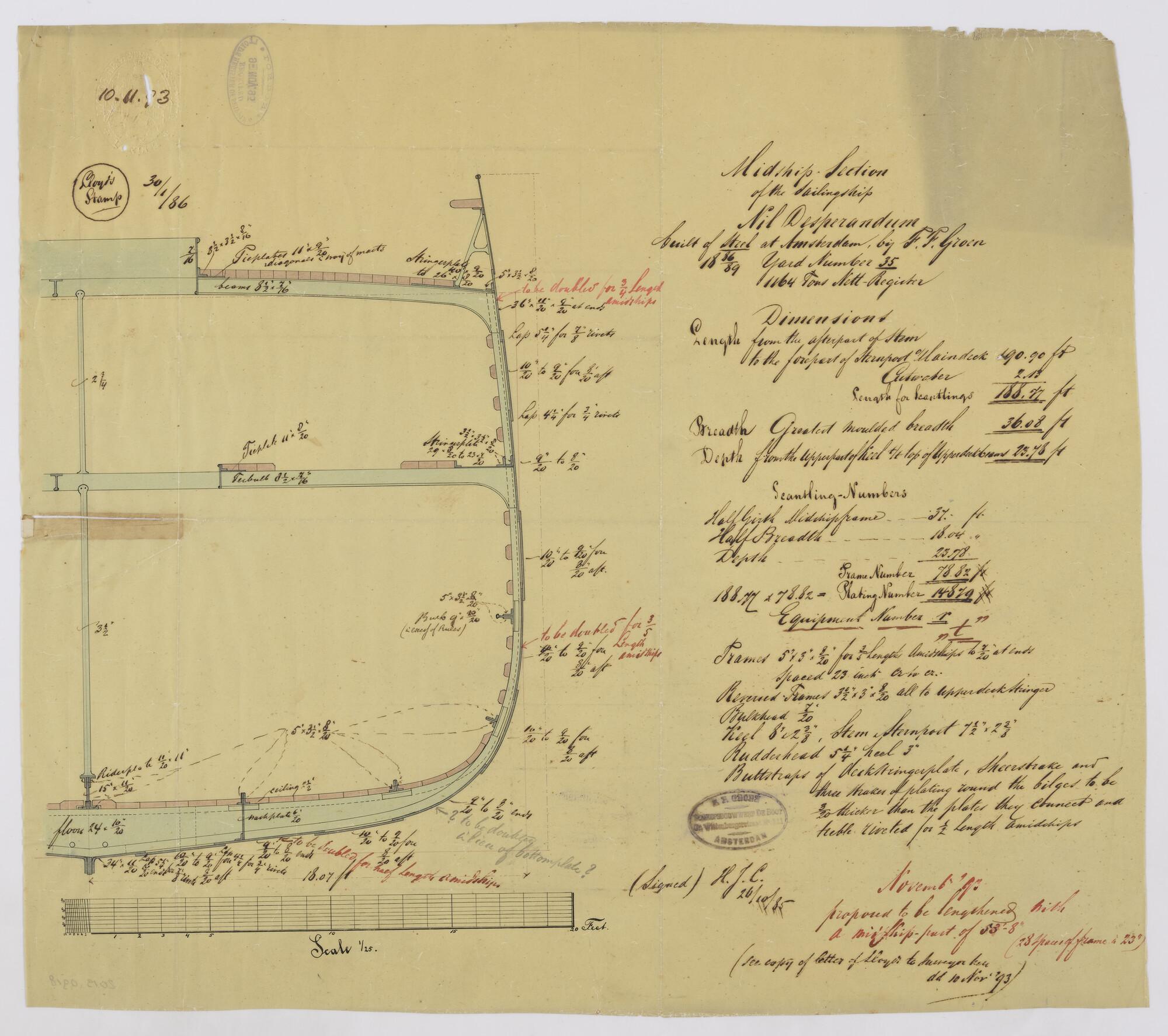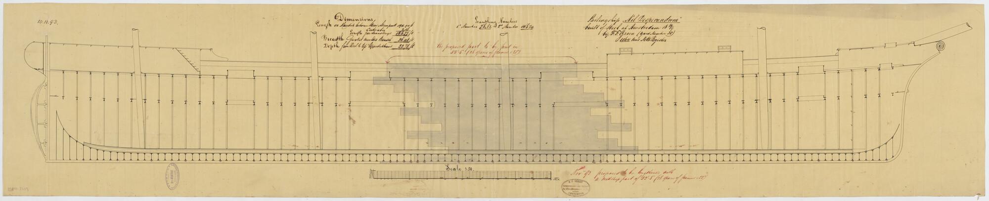 Schaal van tonnenmaat van het barkschip Semper Spera...