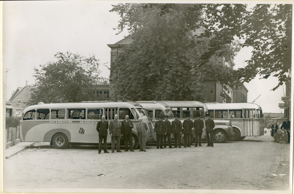 Zwart-wit foto van het jubileum van de Lobithse Auto...