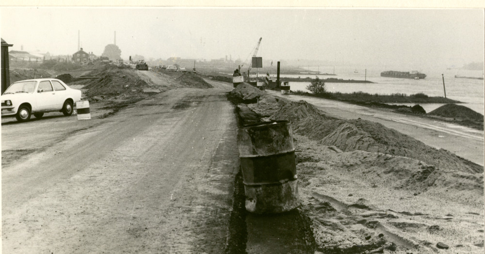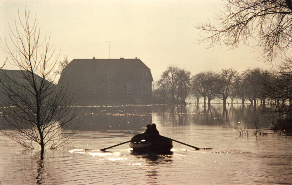 Zwart-wit foto van de kade te Tolkamer op 16 januari...