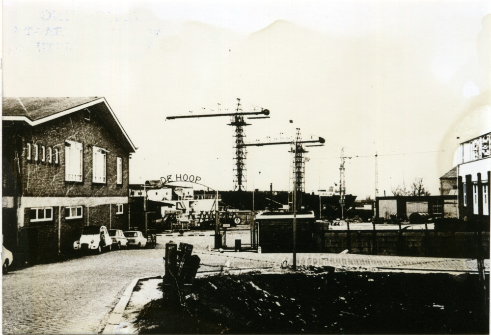 Zwart-wit foto van scheepswerf De Hoop te Tolkamer i...