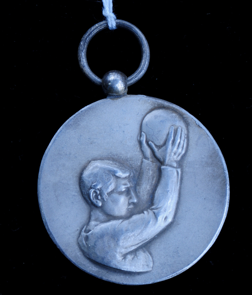 Medaille van metaal voorstellende een korfballer 1921