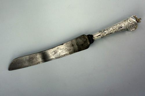 Zilveren voorsnijmes met zilveren heft en stalen lemmet