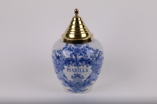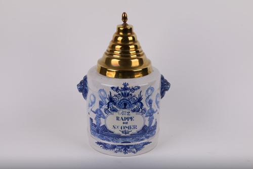 Winkel tabakspot wit blauw Delfts aardewerk met mess...