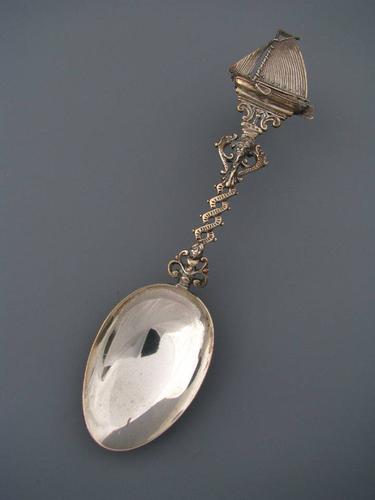 Zilveren gelegenheidslepel met zeilschip, ca. 1792