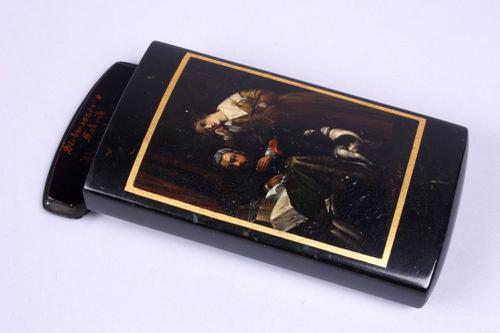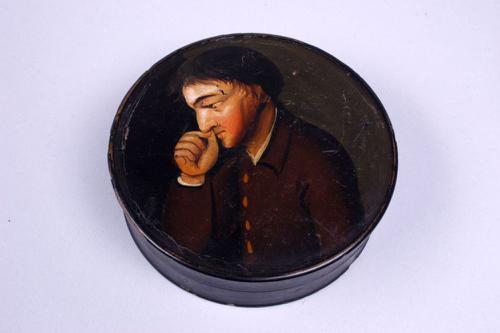Papier-maché doos met voorstelling van een tabaksnui...