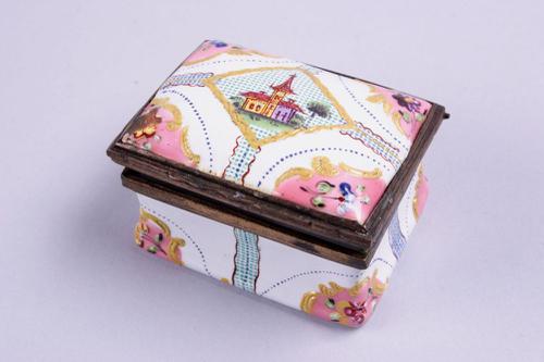 Geëmailleerde koperen doos met transfergravures