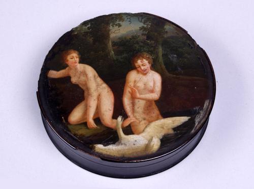 Papier-maché doos met voorstelling van badende vrouwen